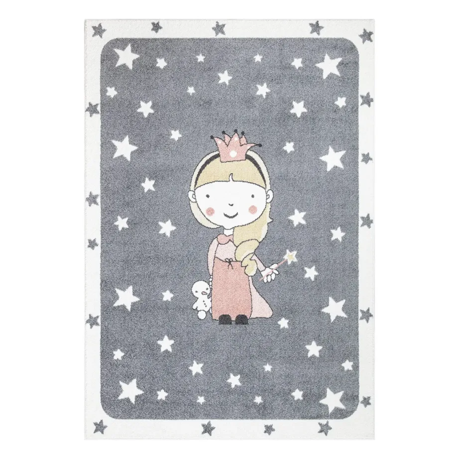 See armas lastevaip toob lastetuppa rahuliku ja muinasjutulise atmosfääri. Vaipa kaunistab printsessimotiiv, mida ümbritseb tähistaevas. Õrnade hallide ja pastelsete toonide kombinatsioon teeb vaiba omapäraseks ning sobib suurepäraselt lastetuppa, kus väärtustatakse nii stiili kui ka hubasust. Vaip on masinvalmistatud 100% polüpropüleenist / Frizeé-st, pakkudes vastupidavust ja lihtsat hooldust.