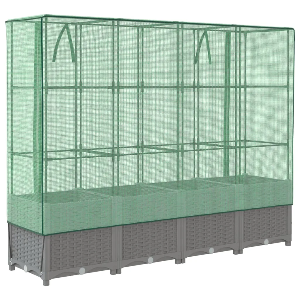 Kasvuhoonekattega kõrgendatud peenar pakub oma tugeva tugiraamiga palju kasvuruumi.Tugev konstruktsioon: polüpropüleenist valmistatud kõrgendatud peenral on peal tugev rauast toruraam, mis võimaldab taimedel kasvada ja sealt läbi ronida.Funktsionaalne kate: taimekastil on vettpidav polüetüleenkate, mis kaitseb teie taimi äärmuslike temperatuuride eest ning hoiab eemal putukaid, linde ja väikeloomi.Praktiline disain: taimekastil on ventilatsiooniks lukud, mis võimaldavad katet vastavalt vajadusele reguleerida. Lisaks on selle ülaosas nöörid, mis muudavad võrgu toru külge kinnitamise lihtsaks.Rotangiimitatsiooniga disain: rotangiimitatsiooniga kõrgendatud peenar lisab teie väliruumile loomulikku võlu.Lai kasutusala: taimekastis on küllaldaselt ruumi taimede, köögiviljade, maitsetaimede ja lillede jaoks. Saate seda kasutada aedades, siseõuedes, rõdudel jne.