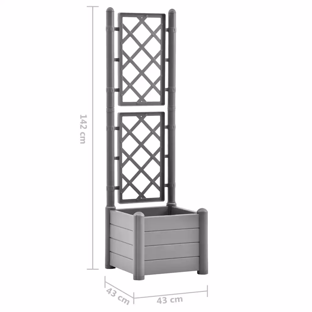 Komplektis on üks kivihall PP-taimekast võrega, mille mõõtmed on 43 x 43 x 142 cm ja mahutavus 30 l.