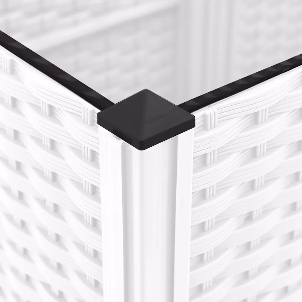See valge rotangimustriga taimelava pakub mugava lahenduse lillede, maitsetaimede ja köögiviljade kasvatamiseks, kui maapinda on vähe või see pole sobiv. Polüpropüleenist konstruktsioon on kerge ja vastupidav ning mõõdud 120 x 40 x 38 cm annavad taimedele rohkelt kasvuruumi.