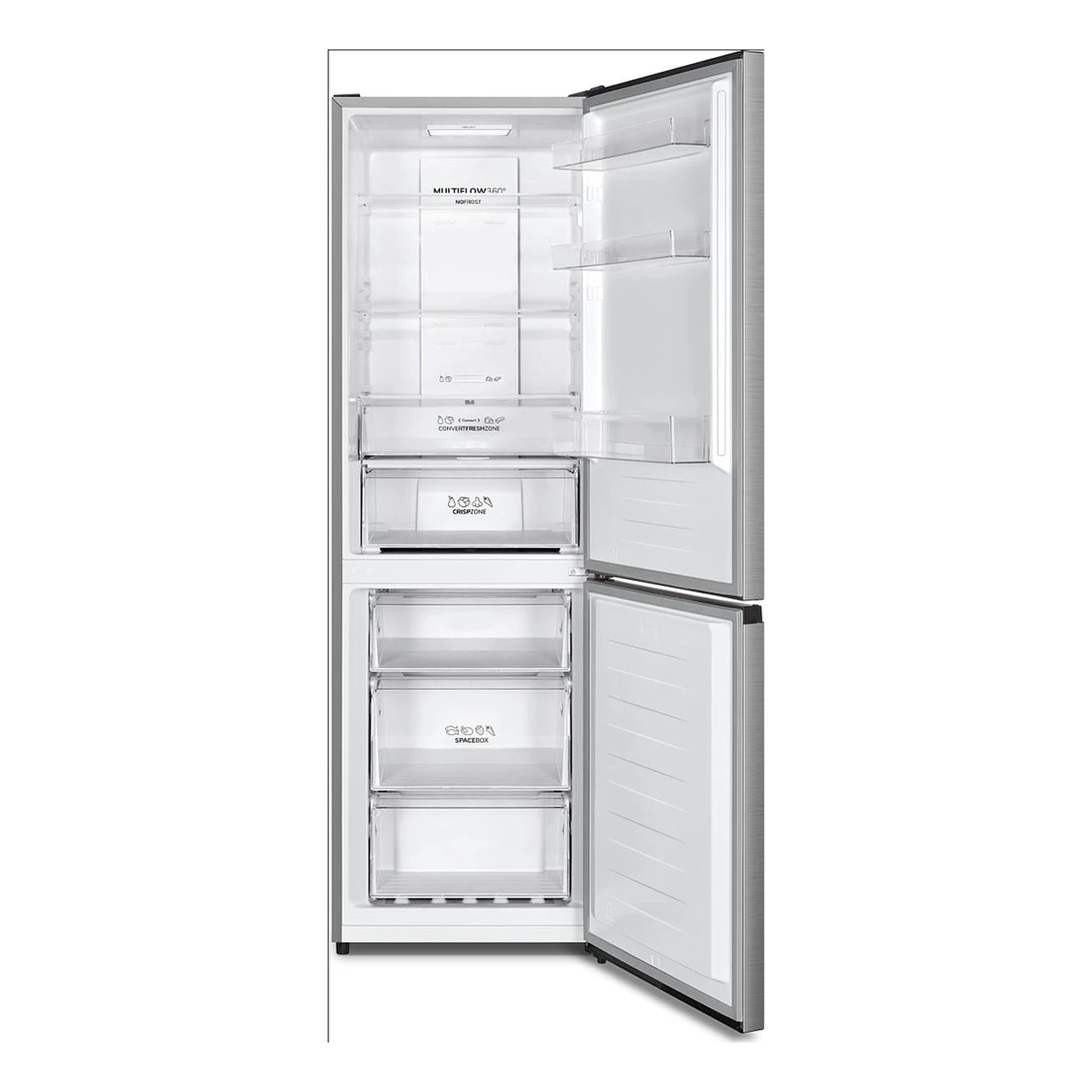 Täis NoFrost külmik sügavkülmaga all GORENJE N619EAXL4, 60 cm, 304 l (207/97 l), E energiaklass, LED-valgustus, 39 dB, hall, pööratavad uksed, elektrooniline juhtimine