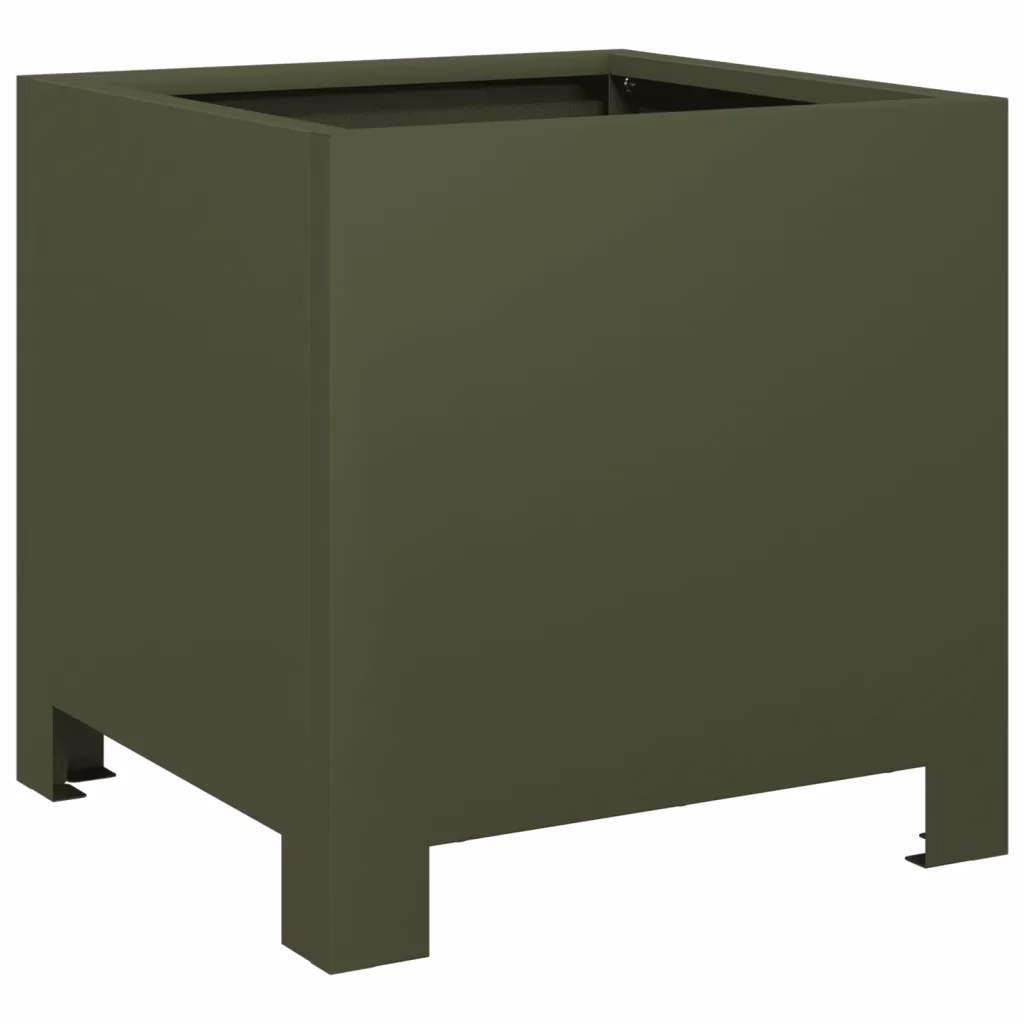 Oliivirohelised terasest taimekastid korrastatud ja kaitstud istutusalade loomiseks