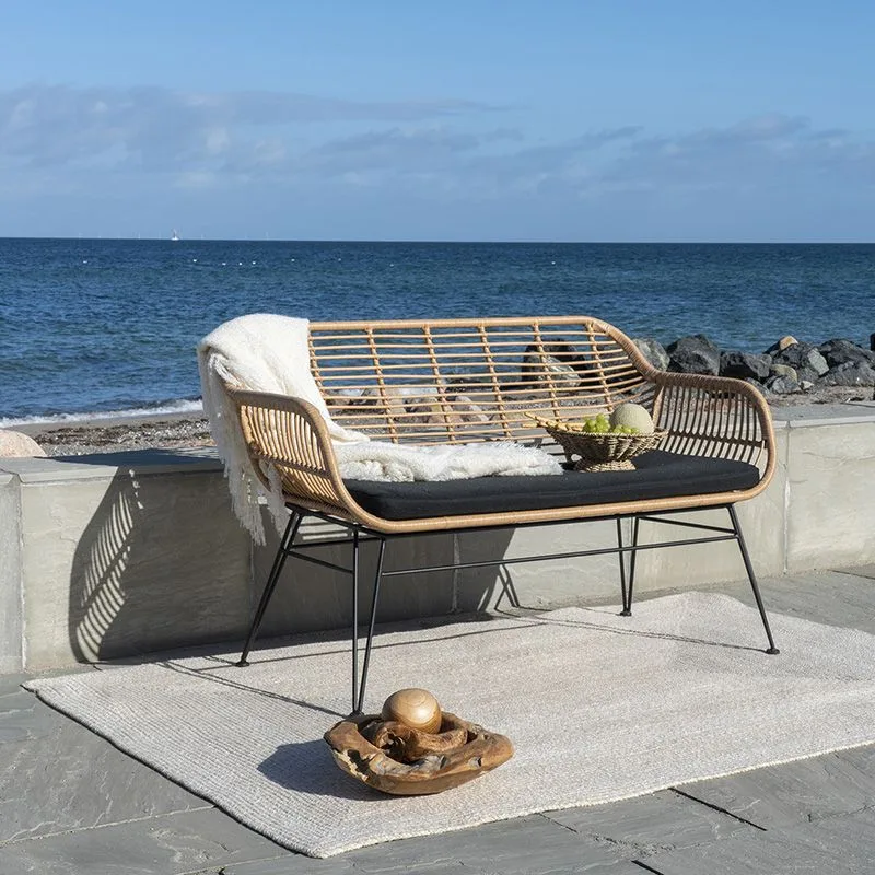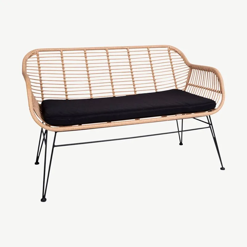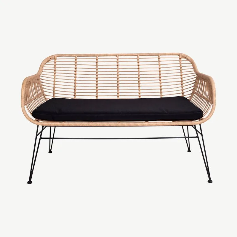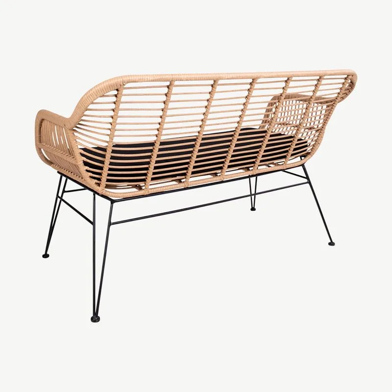 Selle naturaalsest rotangist diivani ajatu kujundus täiendab erinevaid sisustuslahendusi ja sulandub harmooniliselt igasse õueala kujundusse. Mustad metalljalad loovad modernse kontrasti, mis lisab interjöörile kaasaegset iseloomu.