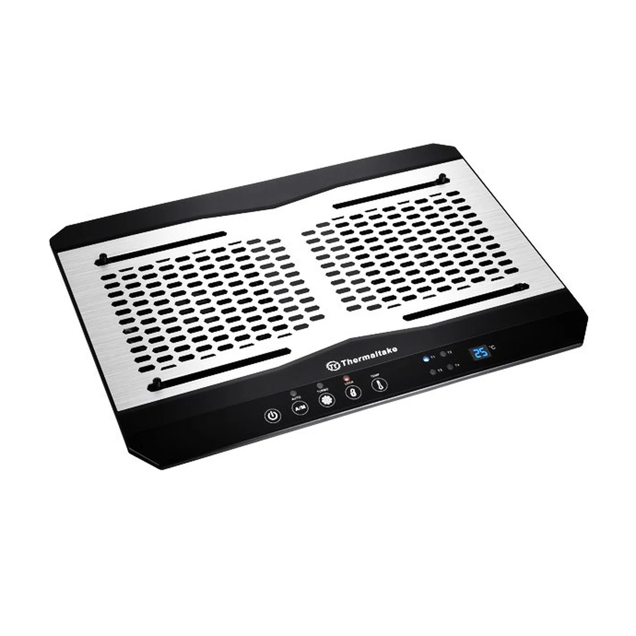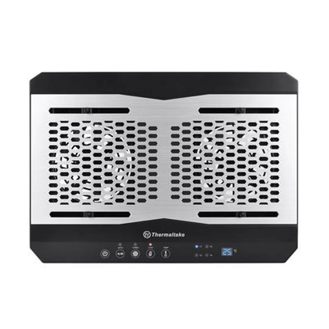 Alumiiniumist ja mustast plastist Thermaltake sülearvuti jahutusalus kahel 120 mm ventilaatoril tagab tõhusa jahutuse ning sobib kuni 17-tollistele seadmetele.