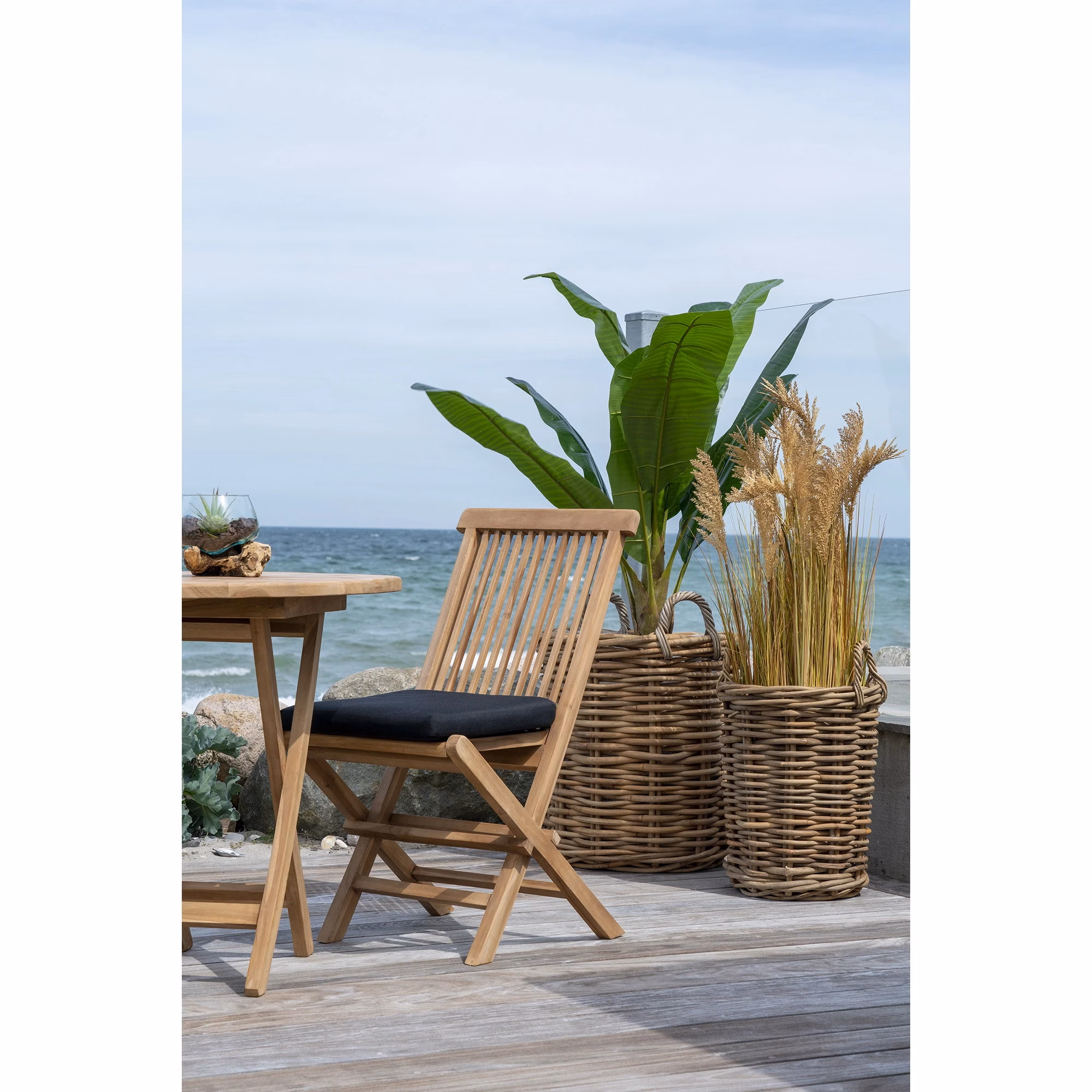 Tool on valmistatud tiigipuidust, mille naturaalne toon ja puidusüü loovad sooja ja ajatu mulje. Naturaalne viimistlus laseb puidumustril hästi esile tulla ning muudab iga tooli välimuse pisut omanäoliseks. Selline välimus sobib eriti hästi neile, kes eelistavad terrassil või aias rahulikku ja looduslähedast stiili.