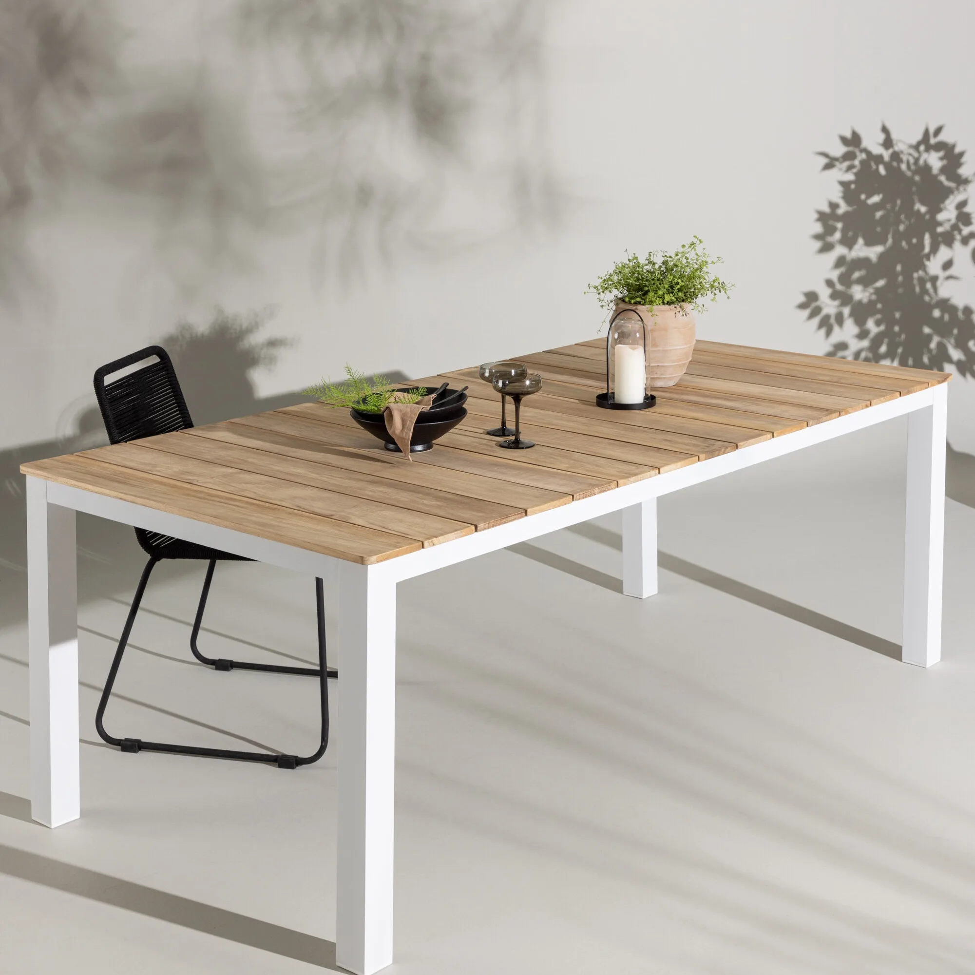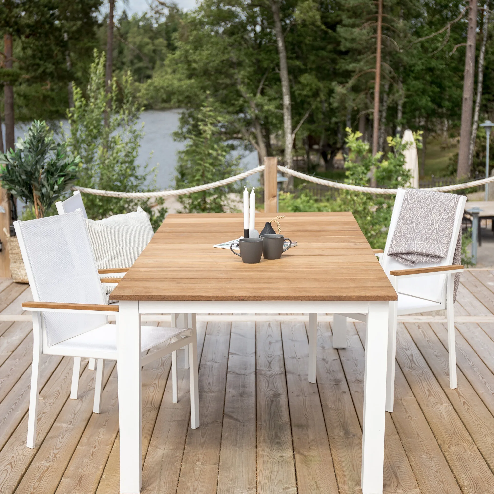 Tiigipuust aia söögilaud Mexico ühendab endas modernse disaini ja ajatu vastupidavuse. Selle kvaliteetsest tiigipuust lauaplaat lisab naturaalsust ja soojust igale õuealale, samas kui tugev valge metallist alusraam loob stiilse ja kaasaegse ilme. Tänu oma läbimõeldud konstruktsioonile sobib see söögilaud nii igapäevasteks eineteks kui ka pidulikeks koosviibimisteks.