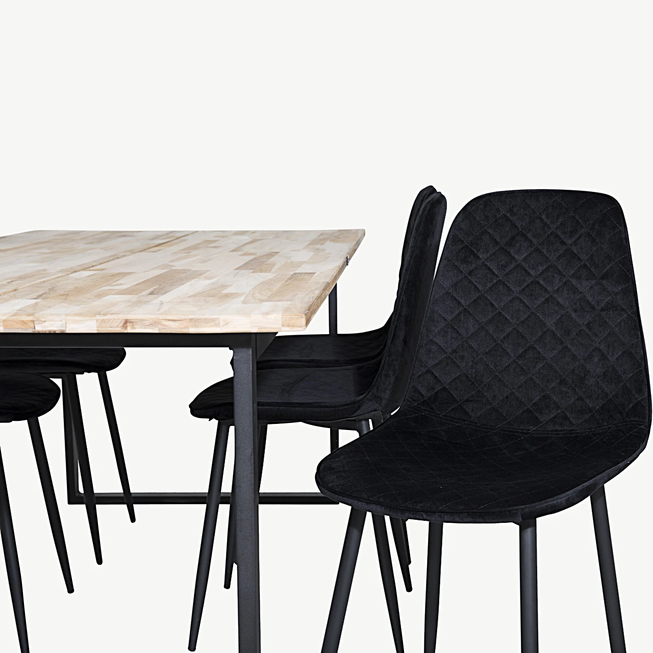 Kui otsid kauakestvat, pilkupüüdvat ning põhjamaise stiiliga söögilahendust, siis on tiigipuust söögikomplekt Cirebon mustade sametist Polar toolidega parim võimalik valik sinu koju.