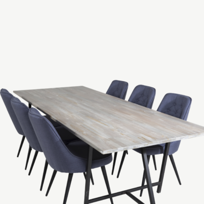 Tiigipuust söögilauakomplekt Jepara on loodud põhjamaist disaini ja praktilisust hindavale perele. Komplekti kuulub kõrgekvaliteedilise tiigipuidust lauaplaadiga suur söögilaud ning viimistletud hallide polsterdatud toolidega, mis muudavad söögiala hubaseks ja elegantseks. Tiigipuust söögilauakomplekt sobib hästi nii avarasse perekoju kui ka külaliste võõrustamiseks.