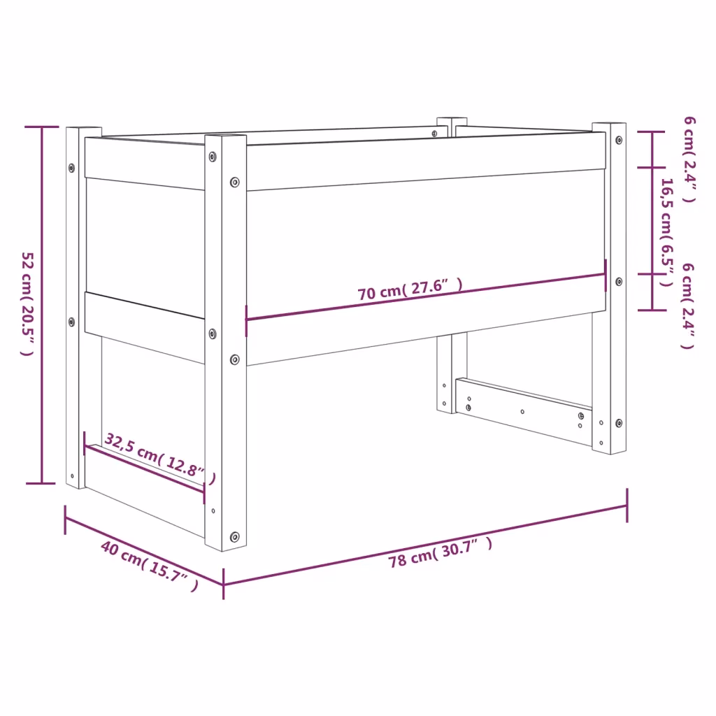 - Tugev puitraam tagab stabiilsuse ja kindla toe mullale ning taimedele ka täidetud kastiga.