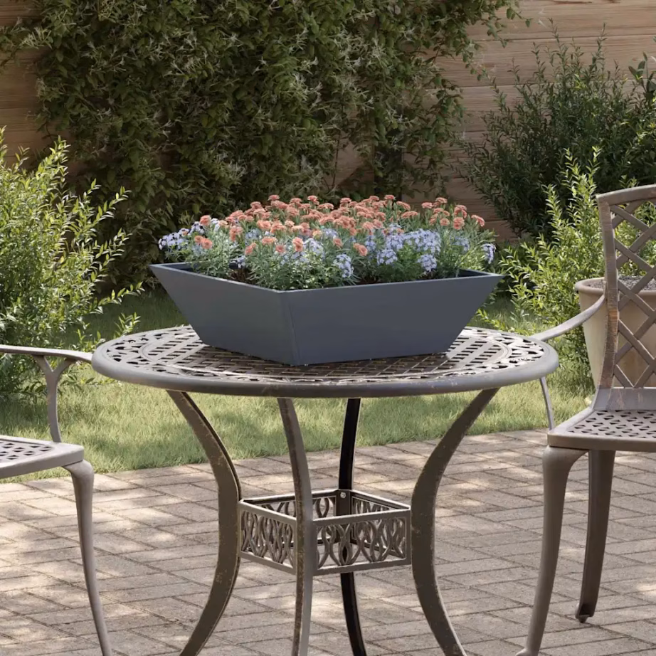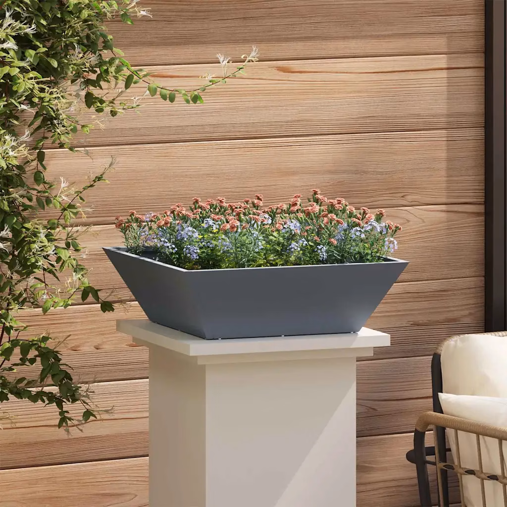 See viiest metallist aiaistutusnõust koosnev komplekt sobib neile, kes eelistavad modernset ja minimalistlikku välisilmet. Trapetsikujulised, antratsiitvärvi nõud loovad puhta ja korrapärase mulje ning sobivad nii aeda, terrassile kui ka kaubanduslikesse haljasaladesse. Madal konstruktsioon ja mõõdud 50 x 50 x 15 cm aitavad taimi selgelt esile tuua ning lihtne vorm muudab hoolduse mugavaks.