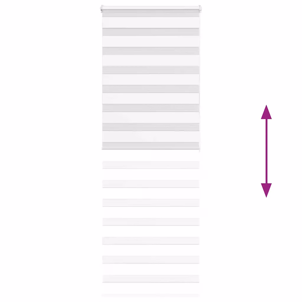 See valge triibuline sebraruloo suurusega 70 x 200 cm ühendab privaatsuse ja valguse tõhusa juhtimise. Kahekihiline vahelduvate läbipaistvate ja läbipaistmatute ribadega kangas ning kettmehhanismiga juhtimine võimaldavad valguse hulka täpselt reguleerida nii elutoas, magamistoas kui ka kontoris.