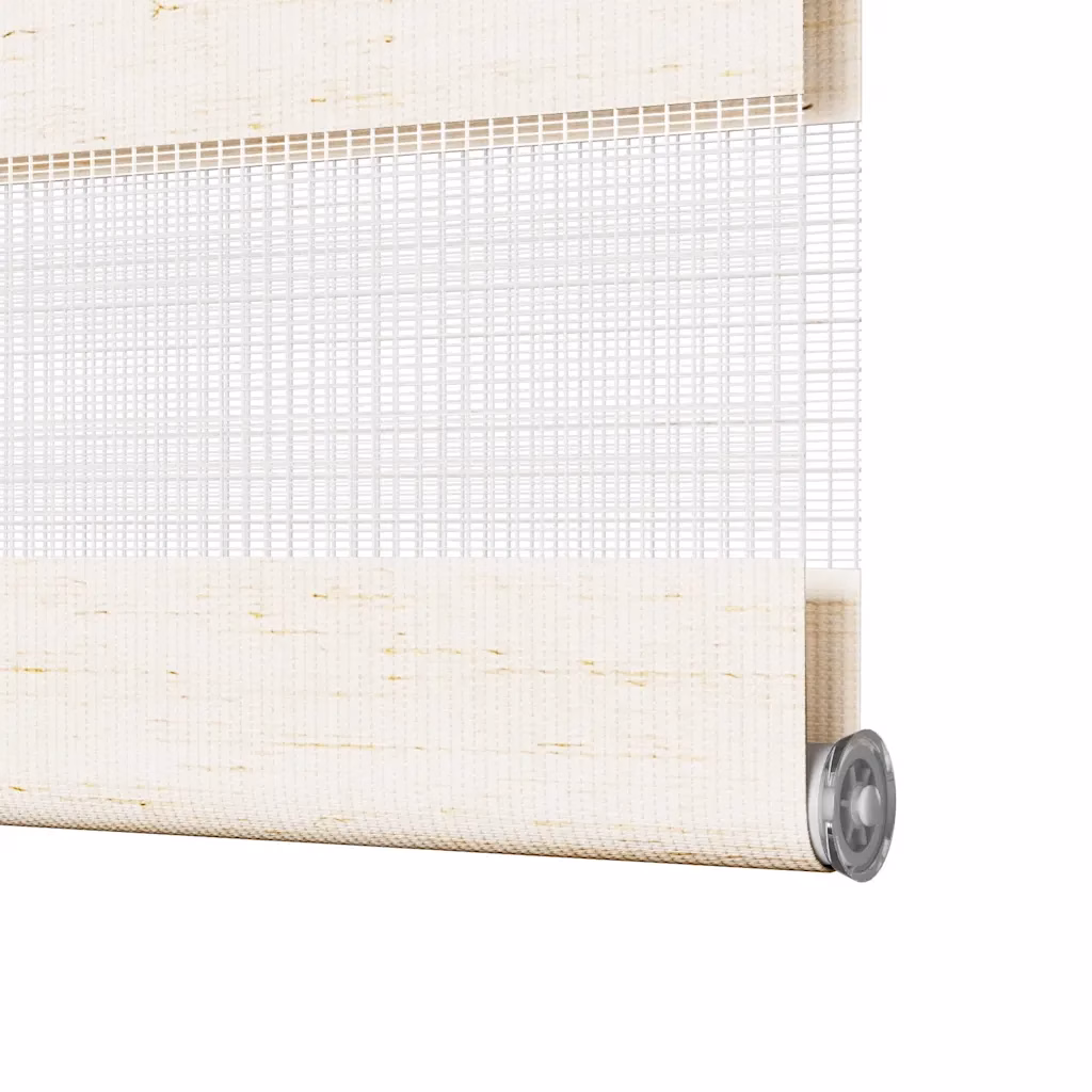 - Kaherealine triibuline kangas koos vaheldumisi läbipaistvate ja läbipaistmatute ribadega võimaldab reguleerida valguse hulka alates poolläbipaistvast kuni peaaegu pimendavani.