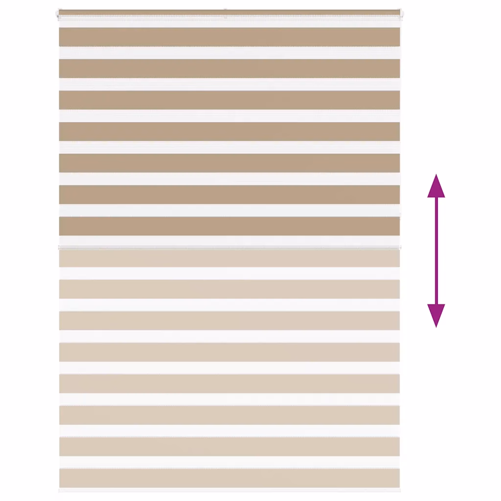 Liivapruun triibuline zebra-ruloo 160 x 230 cm ühendab ühes lahenduses valguse juhtimise ja privaatsuse. Kahekihiline kangas vahelduvate läbipaistvate ja läbipaistmatute ribadega võimaldab ruumi valgust sujuvalt reguleerida poolläbipaistvast kuni peaaegu pimedani. Neutraalne toon ja lihtne ketiga juhitav mehhanism sobivad hästi elutuppa, magamistuppa või kontorisse.