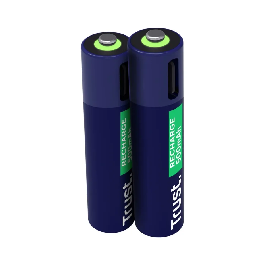 Trust 25585 USB-C laetavad AAA akud (2 tk) mahutavad 500 mAh ja sobivad kuni 800 laadimistsükliks. Kiire, 1-tunnine laadimine ning sinine-roheline disain muudavad need praktiliseks valikuks igapäevaseks kasutamiseks.