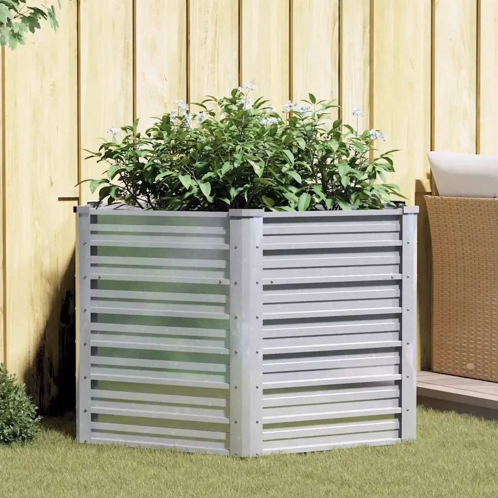 See hõbedane tsingitud terasest peenrakast loob mugava ja korrastatud istutusala aeda, siseõuele, rõdule või terrassile. Ruumikas konstruktsioon võimaldab kasvatada köögivilju, maitsetaimi ja lilli, hoides mulla koondatuna ning taimed kergesti hooldatavana.