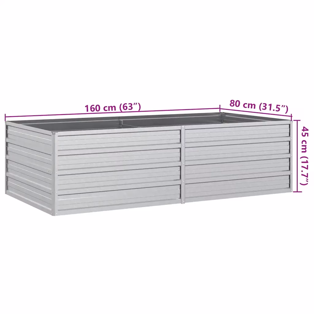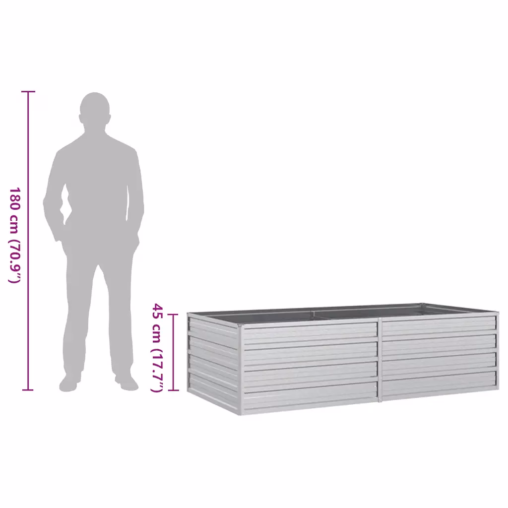 See hõbedane tsingitud terasest peenrakast on praktiline lahendus lillede, köögiviljade ja maitsetaimede kasvatamiseks aias, siseõuel, terrassil või rõdul. Avatud põhja ja suure mahuga konstruktsioon loob taimedele soodsad kasvutingimused ning võimaldab kujundada korrastatud ja ülevaatliku kõrgpeenra.