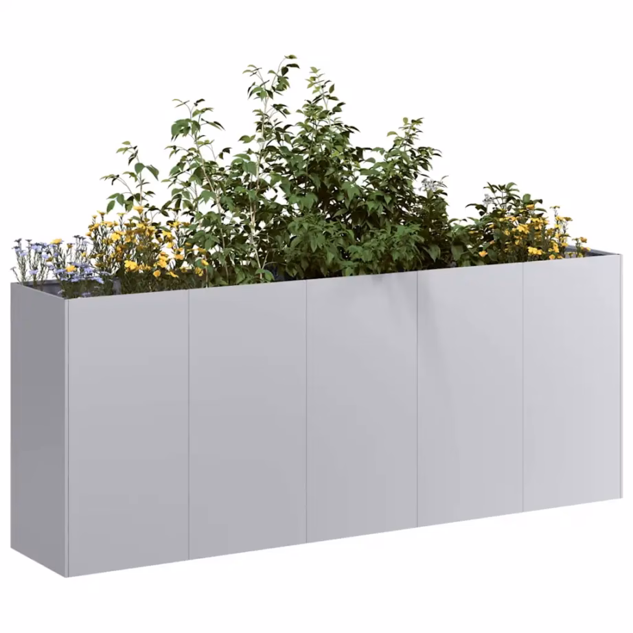See tsingitud terasest taimekast mõõtudega 200 x 40 x 80 cm loob taimedele sügava ja laia kasvupinna, sobides köögiviljade, ürtide ja lillede kasvatamiseks. Hõbedane viimistlus ja avatud põhjaga lahendus teevad sellest praktilise ja samas dekoratiivse lisandi rõdule, terrassile või aeda.