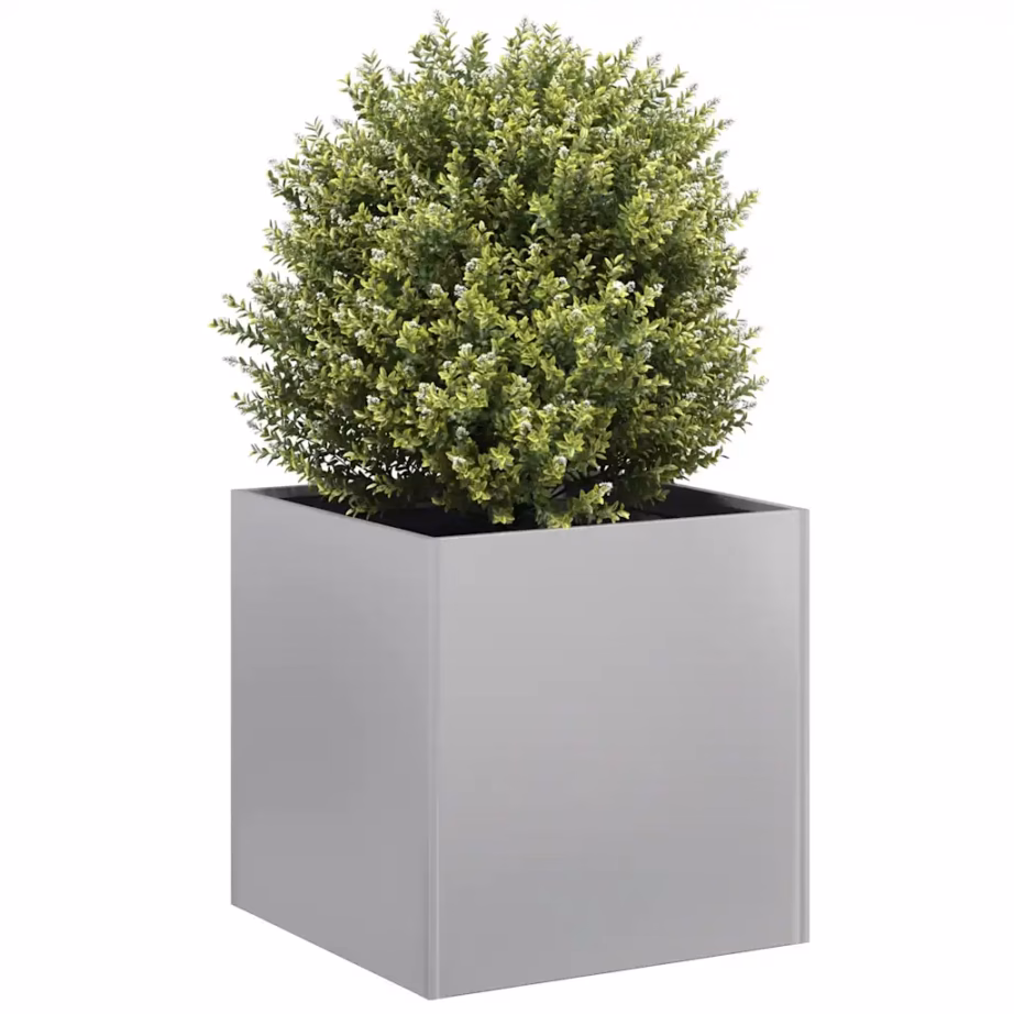 - 1 x tsingitud terasest taimekast mõõtudega 40 x 40 x 40 cm, hõbedane viimistlus
