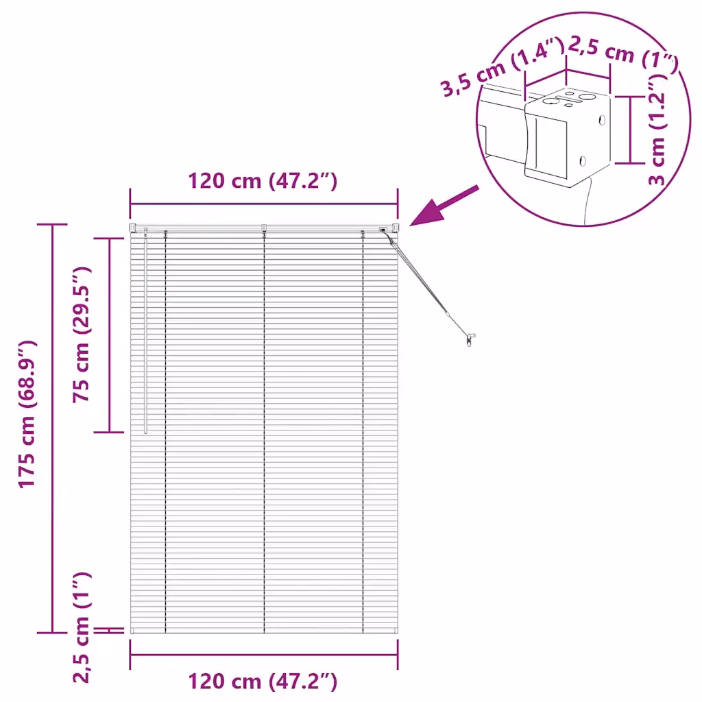 Tumehall alumiiniumist Veneetsia ruloo mõõtudega 175 x 120 cm on praktiline lahendus akende katmiseks köögis, elutoas või kontoris. Reguleeritavad lamellid võimaldavad täpset valguse ja privaatsuse kontrolli, alumiiniumkonstruktsioon tagab vastupidavuse ning lihtsa hoolduse. Ruloo diskreetne välimus sobitub erinevatesse sisekujundustesse ja sobib kasutamiseks ainult siseruumides.