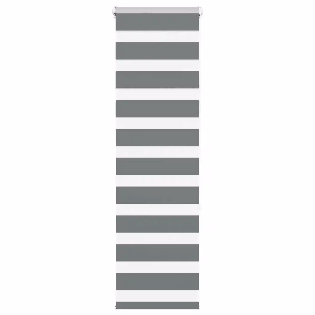 See tumehall sebra ruloo ühendab stiilse triibulise disaini ja praktilise valguse reguleerimise. Kahekihiline kangas vahelduvate läbipaistvate ja läbipaistmatute ribadega aitab luua ruumis sobiva privaatsuse ning vähendab päikesevalgust, sobides hästi elutuppa, magamistuppa või kontorisse.