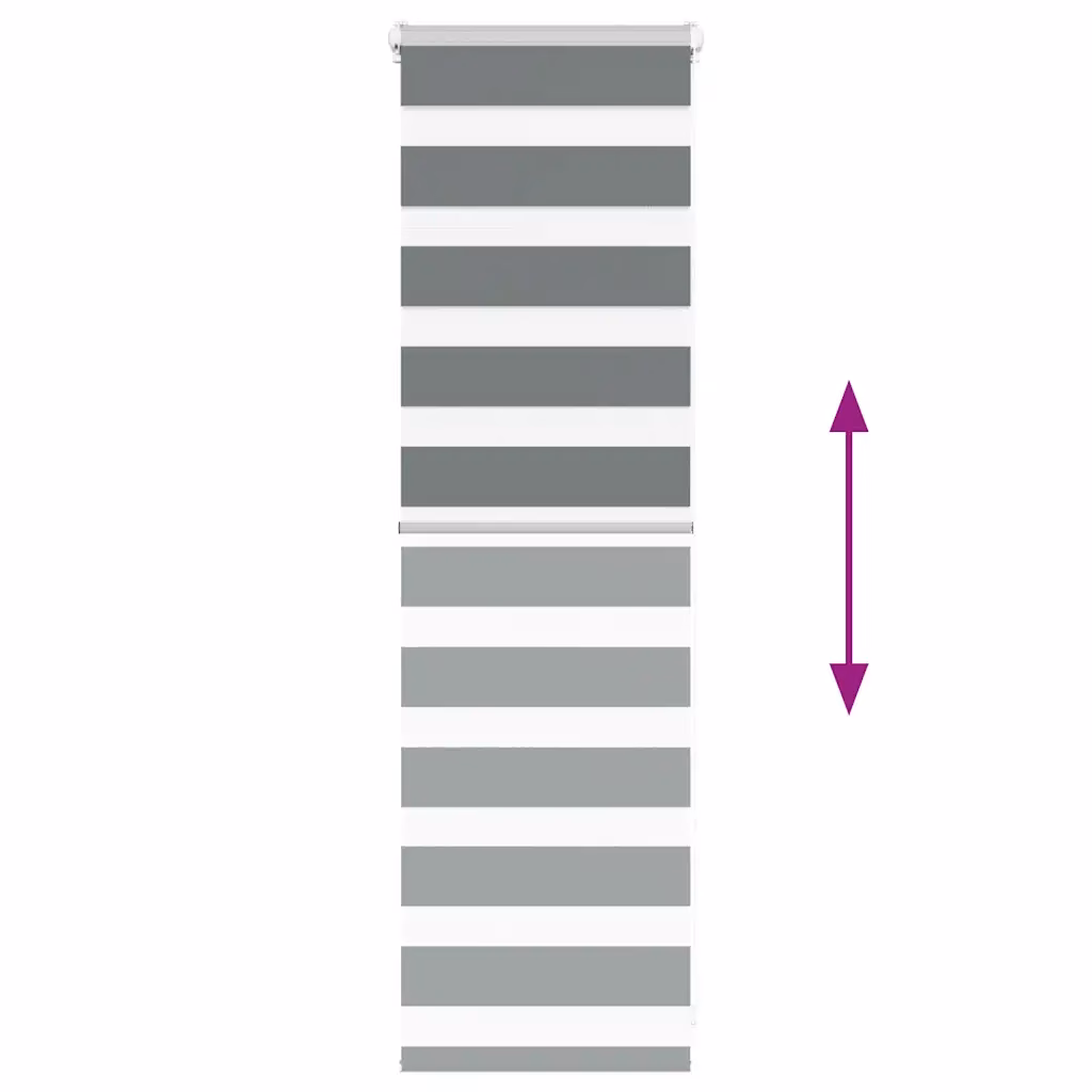 • Kahekihiline sebra kangas vahelduvate läbipaistvate ja läbipaistmatute ribadega (umbes 7,5 cm ja 5 cm), mis võimaldab täpselt seadistada nii privaatsust kui ka valguse hulka.