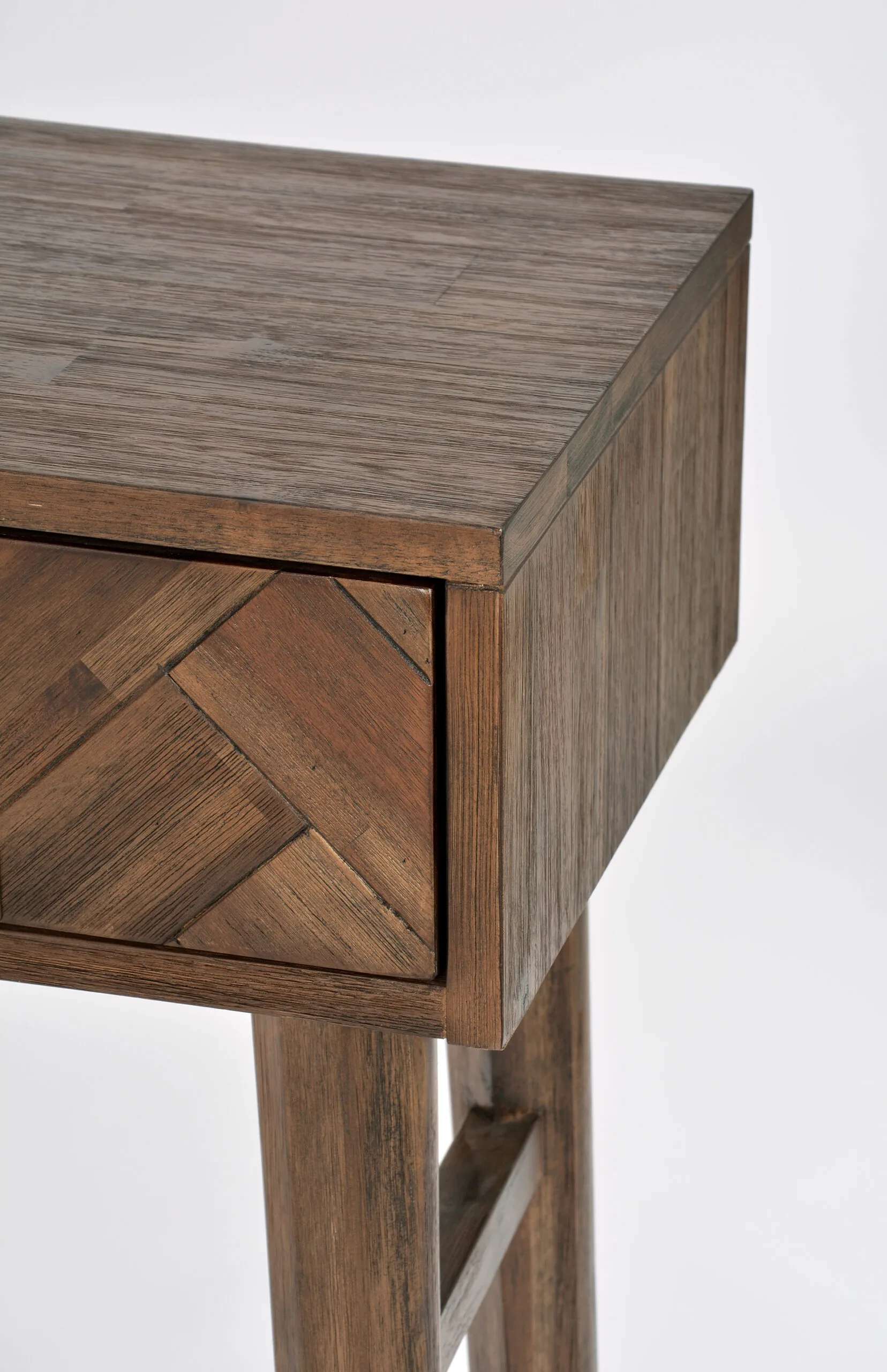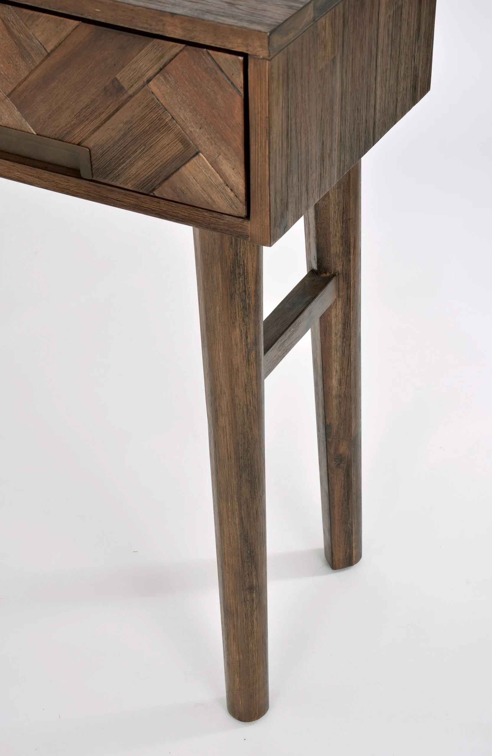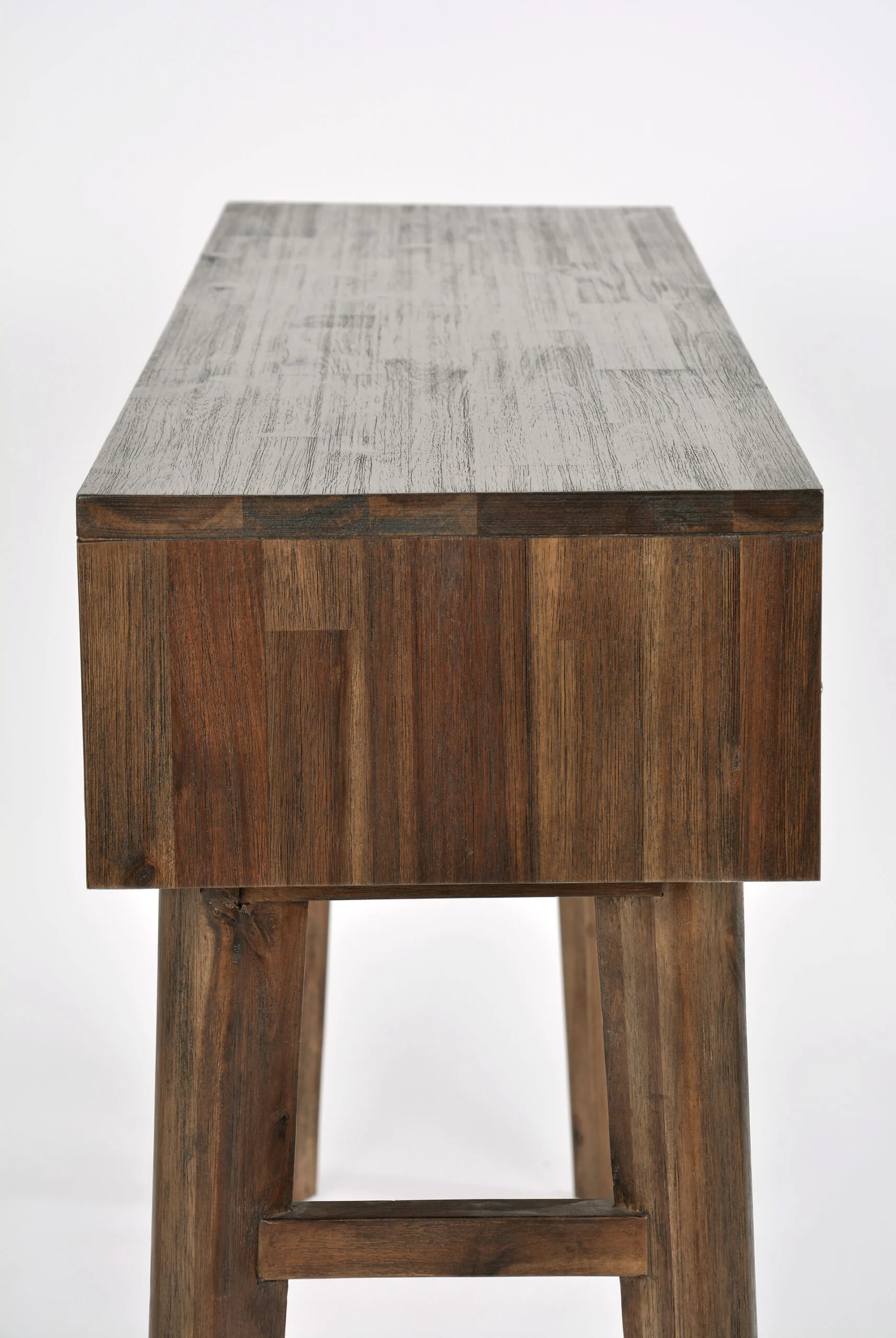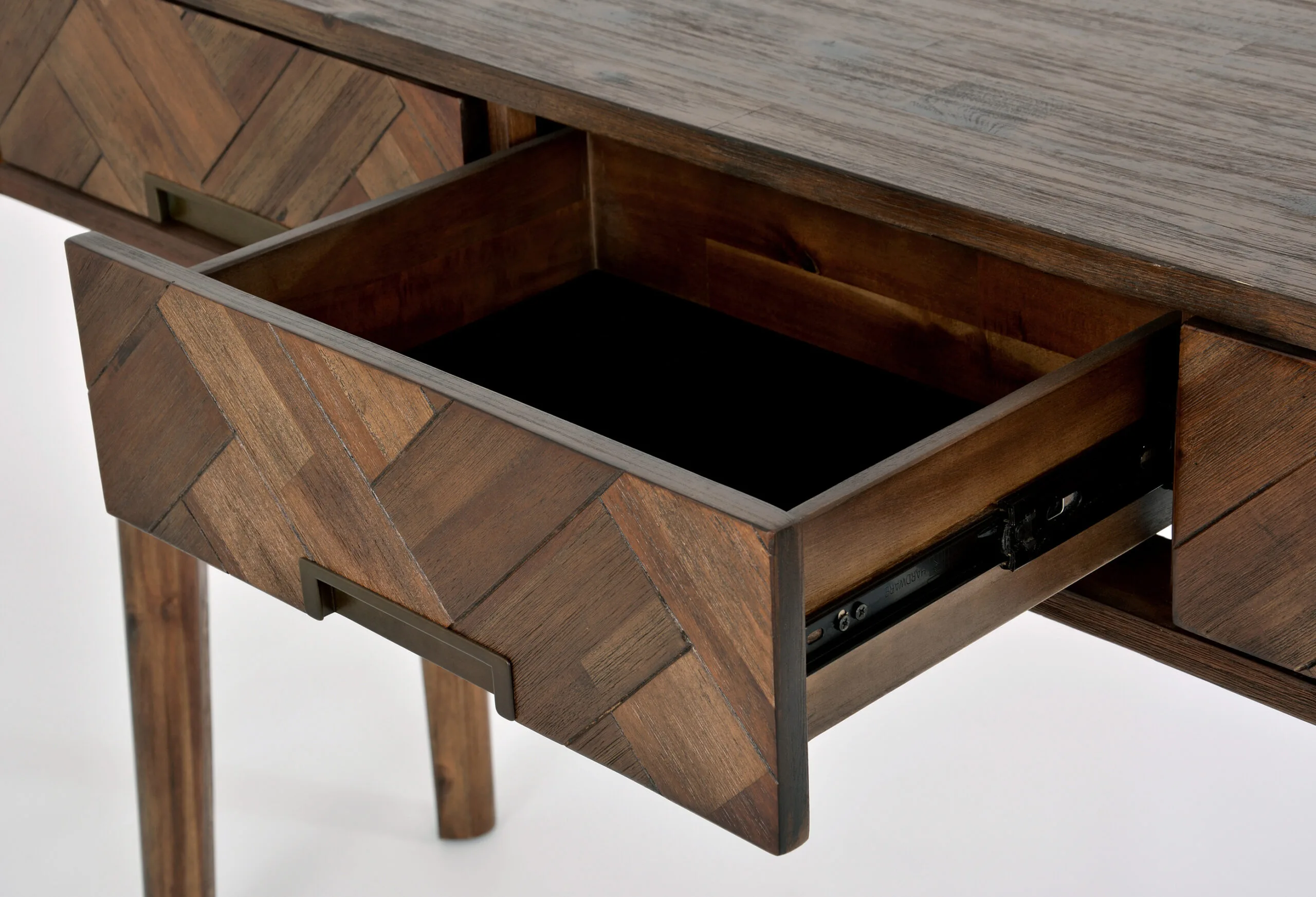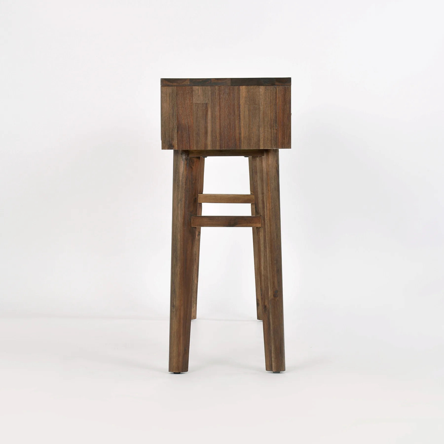Ashton ASTL08 konsoollaud esikusse. Ashton kollektsiooni kuuluv stiilne konsoollaud on valmistatud tugevast harjatud akaatsiapuidust, mille disainis on ühendatud retro, vintage ja boho stiil. Kaunis tumepruun toon koos messingivärvi käepidemetega lisab ruumile iseloomu ja elegantsi. Täispuidust konsoollaud on varustatud kolme sahtliga, mille esipaneelidel on kalasabamustriline intarsia. Laual on tugevad puidust jalad, mis tagavad stabiilsuse ja vastupidavuse.