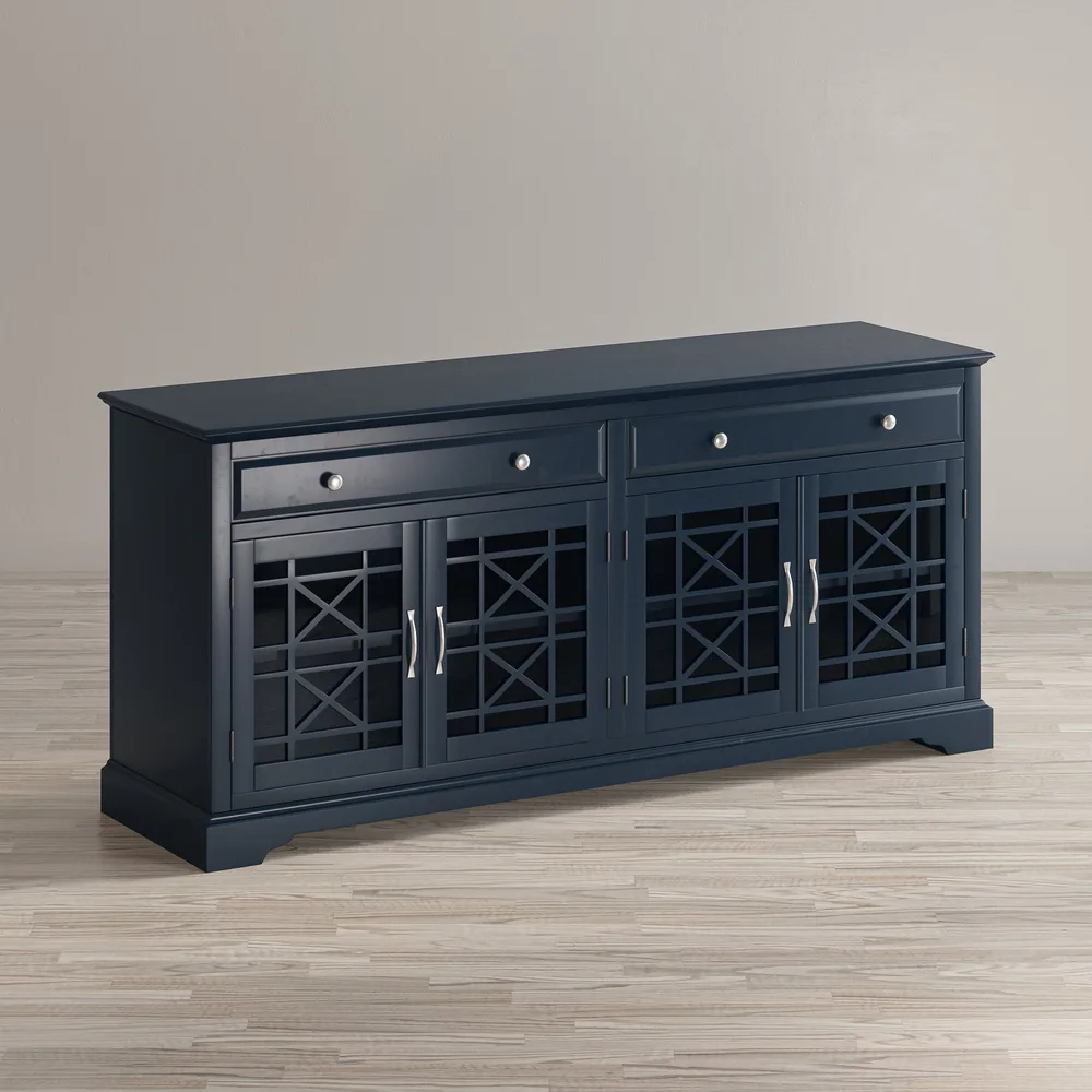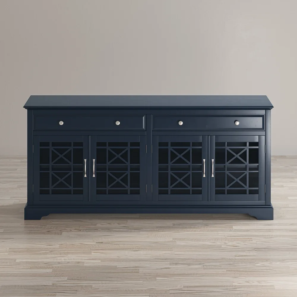 Kummutil on neli ust ja kaks riiulit, pakkudes piisavalt hoiuruumi erinevatele esemetele. Mereväe sinine värv koos pealmise ja äärise kontrastse tooniga lisab teie elutoale kaasaegset ja maitsekalt väljapeetud ilmet. Kummuti mõõtmed on 178 cm lai, 49 cm sügav ja 82 cm kõrge, mis teeb sellest suurepärase lisandi igasse elutuppa, pakkudes piisavalt ruumi ilma ruumi üle koormamata.