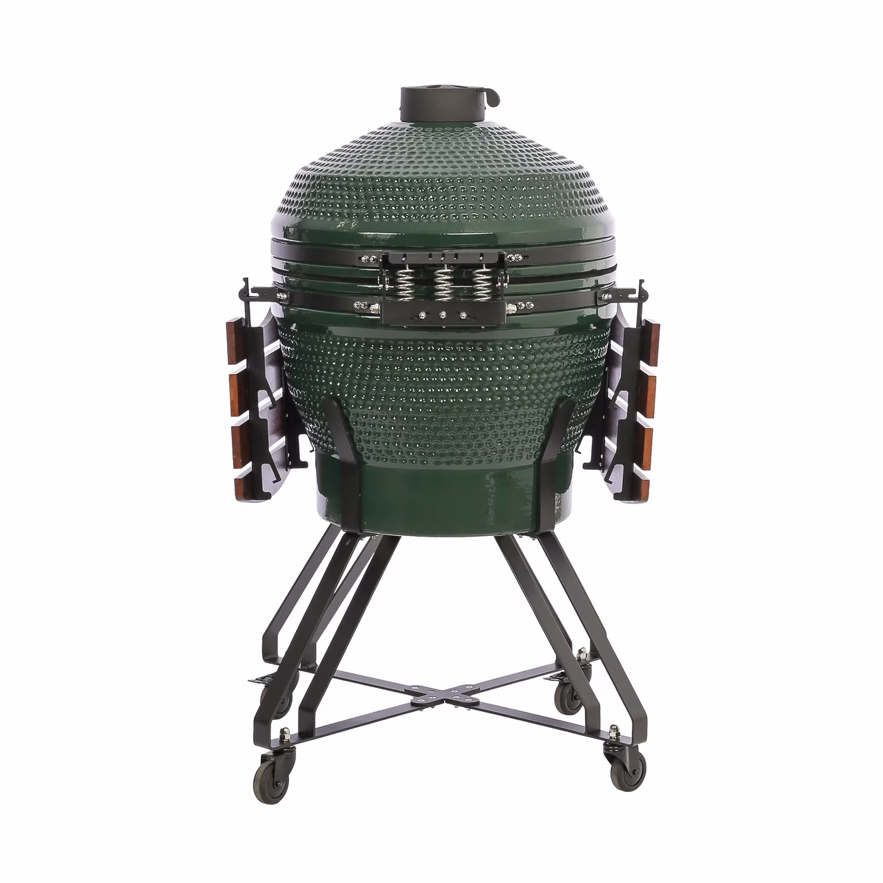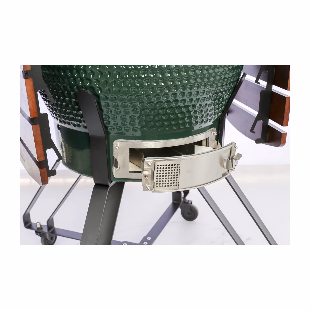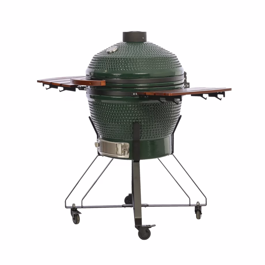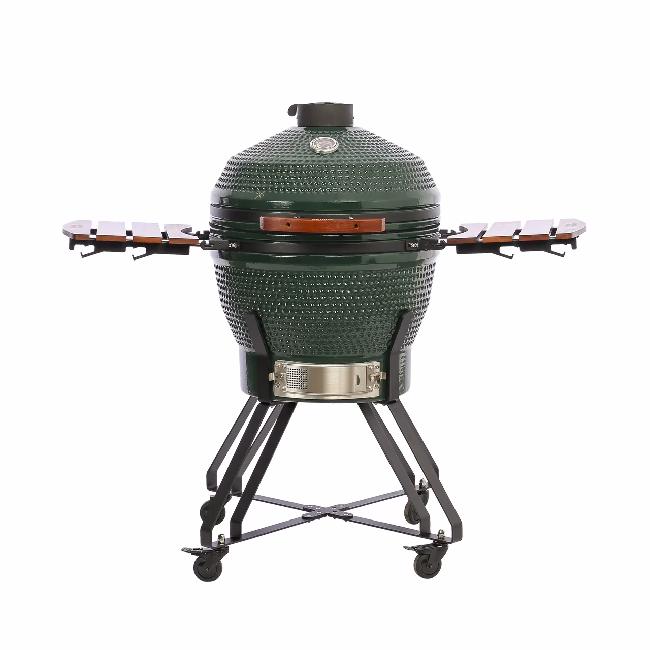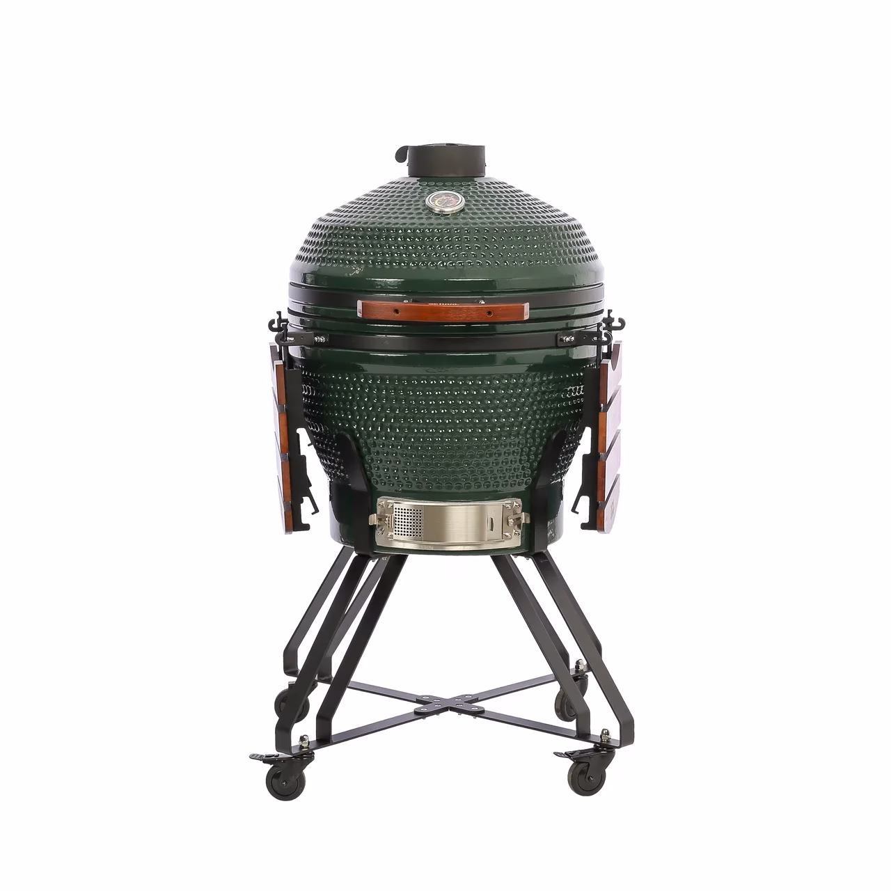 Roheline keraamiline Kamado Pro 24″ L grill sobib 10–12 inimesele, võimaldab küpsetada kahes tsoonis ja seda on tuhasahtli abil lihtne hooldada.