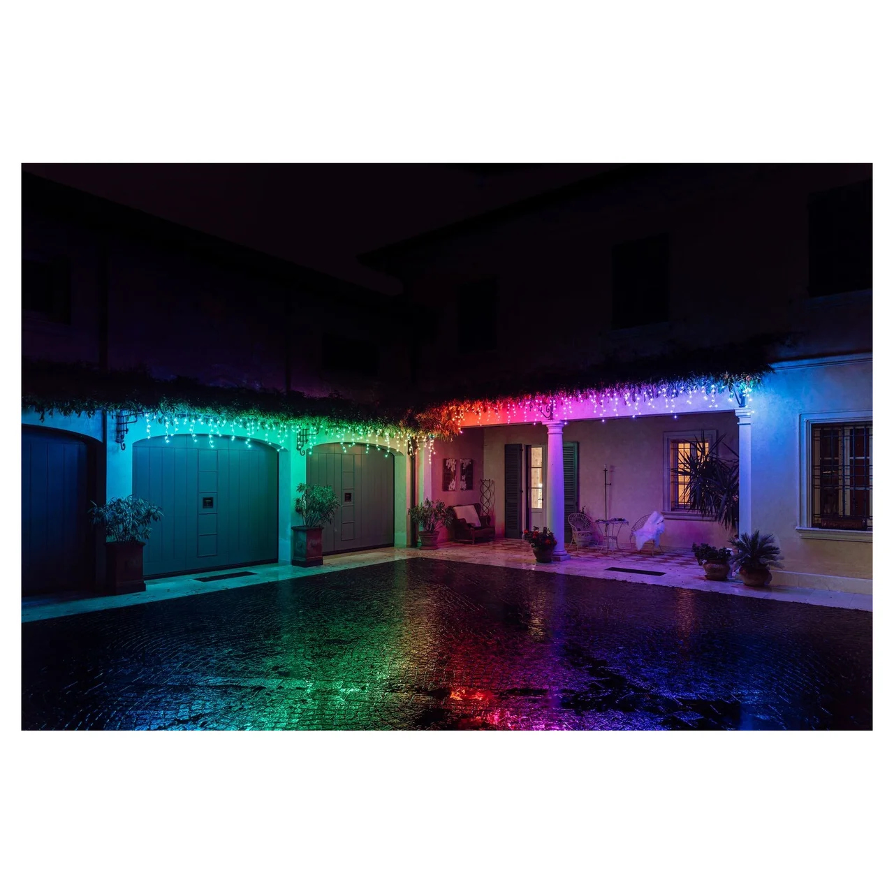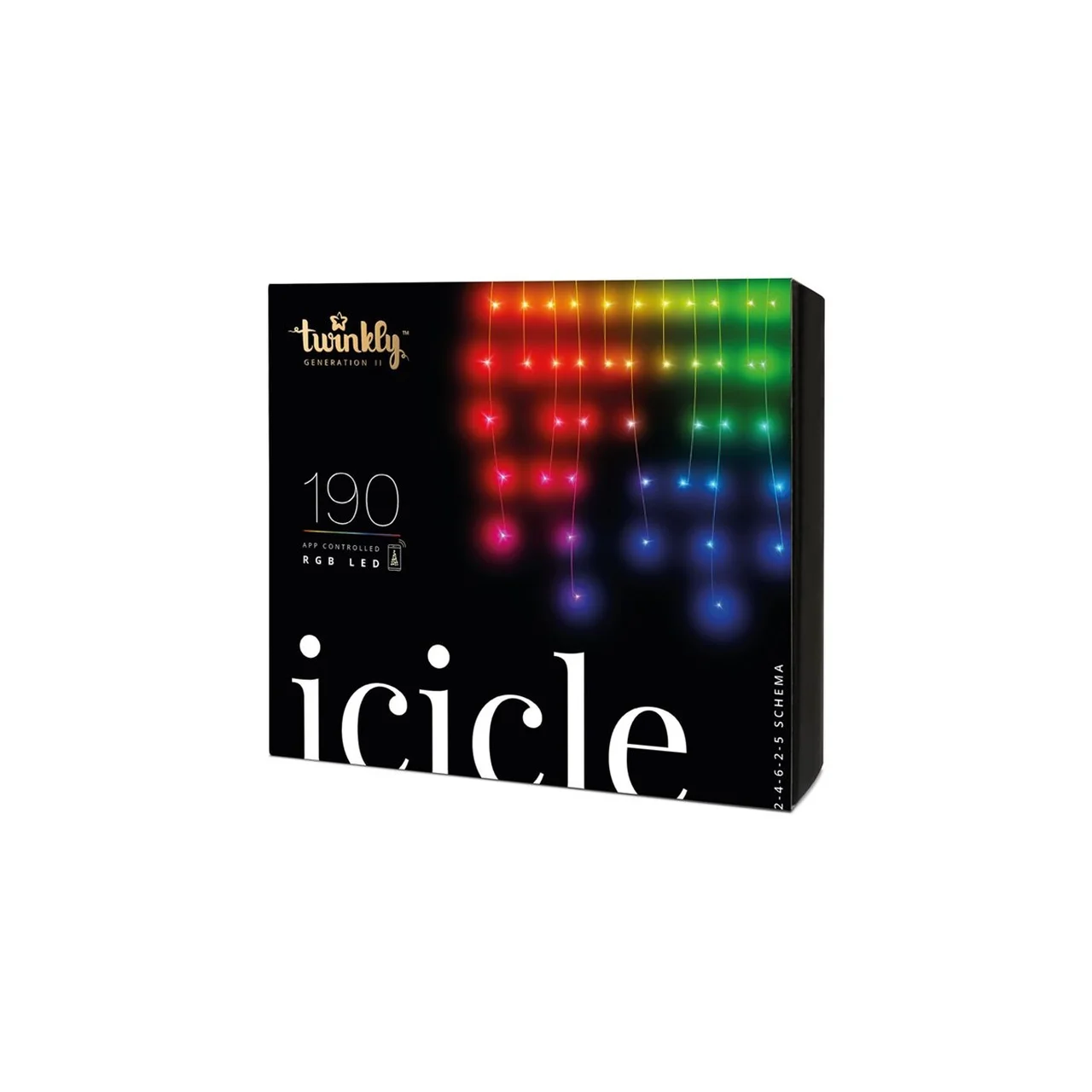 Twinkly nutikad RGB jääpurikujulised jõulutuled annavad 190 LED-iga multivärvilise valguse nii sise- kui välistingimustes ning toetavad juhtimist Wi-Fi ja Bluetoothi abil.