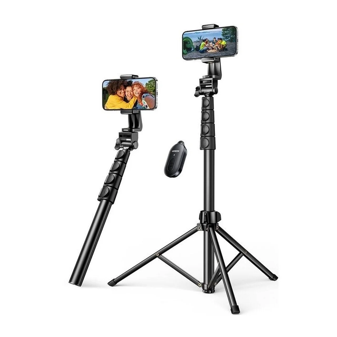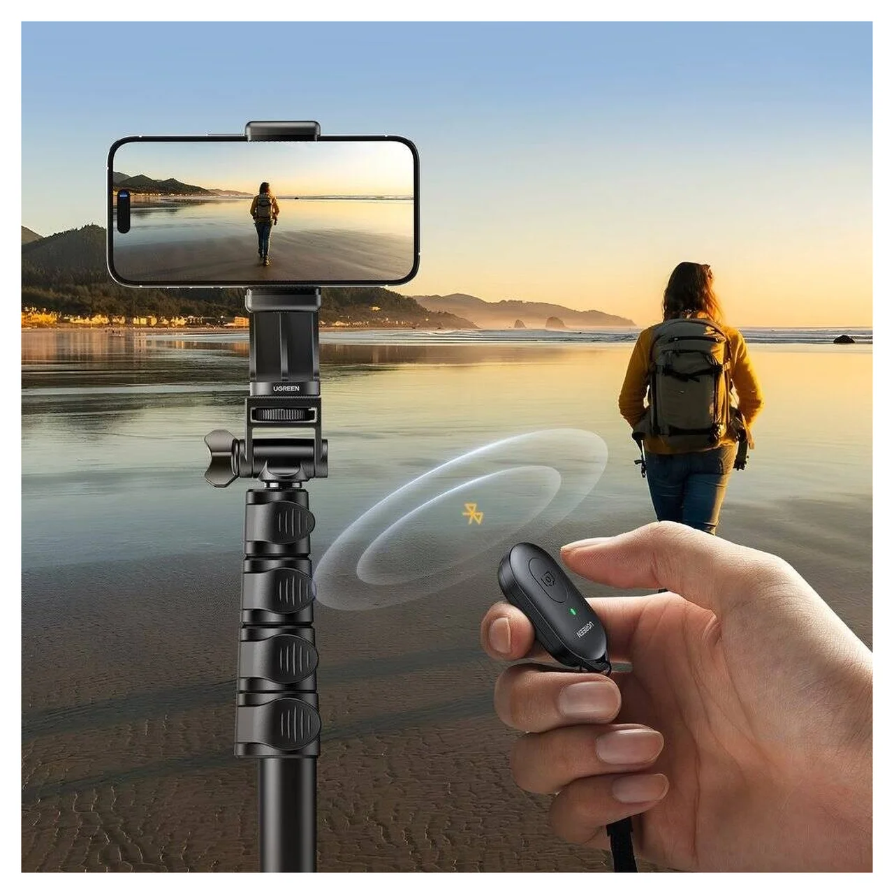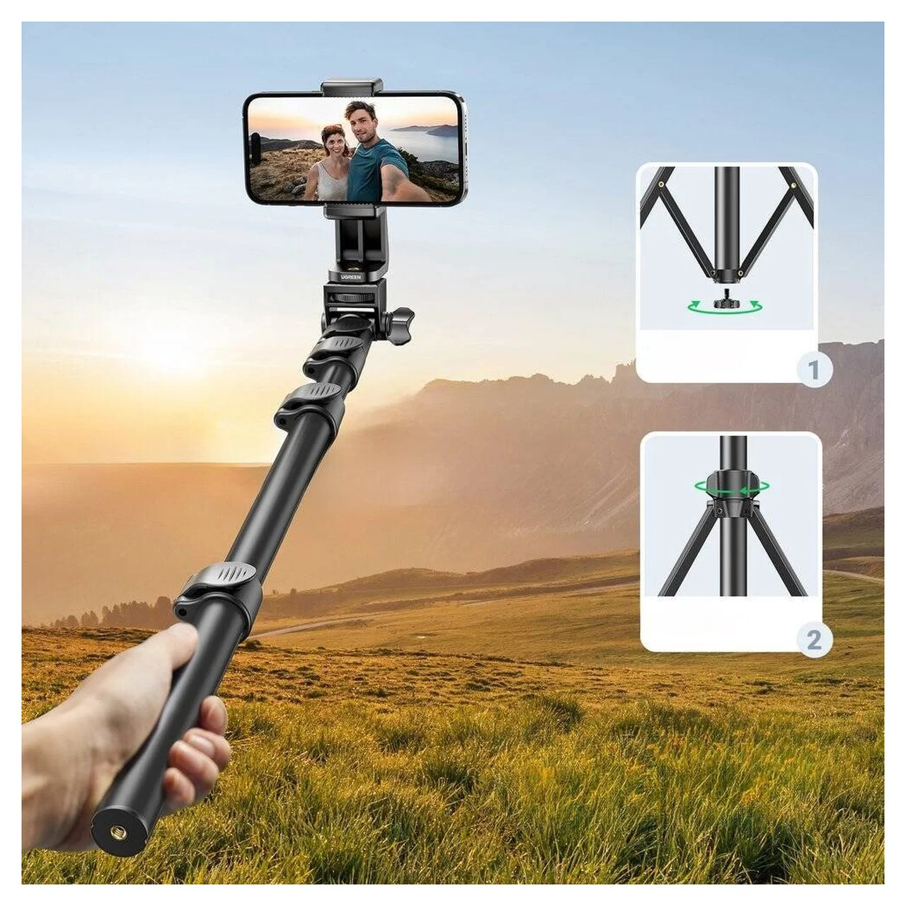 Ugreen LP680 1,8 m must alumiiniumist Bluetooth-statiiv/selfie-pulk kaugjuhtimispuldiga nutitelefonidele