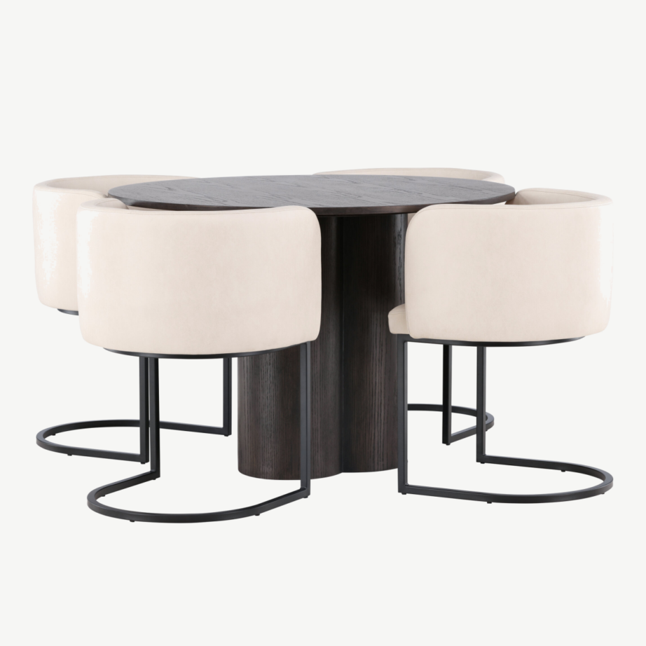 Olivia ümar mokka söögilauakomplekt Simrishamn polsterdatud toolidega – põhjamaise disaini ja mugavuse parim kooslus