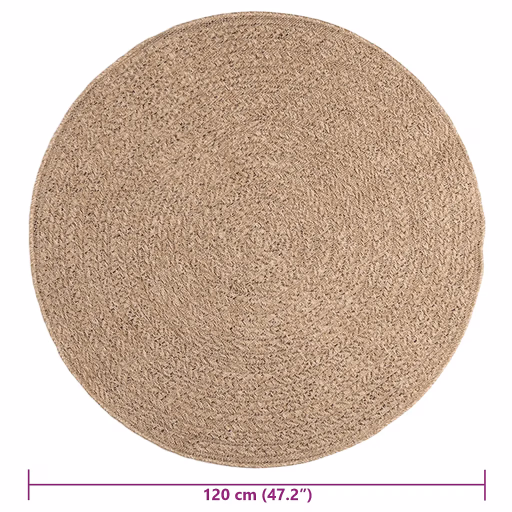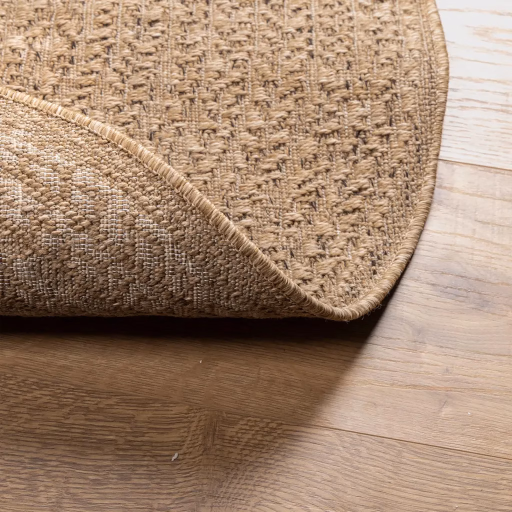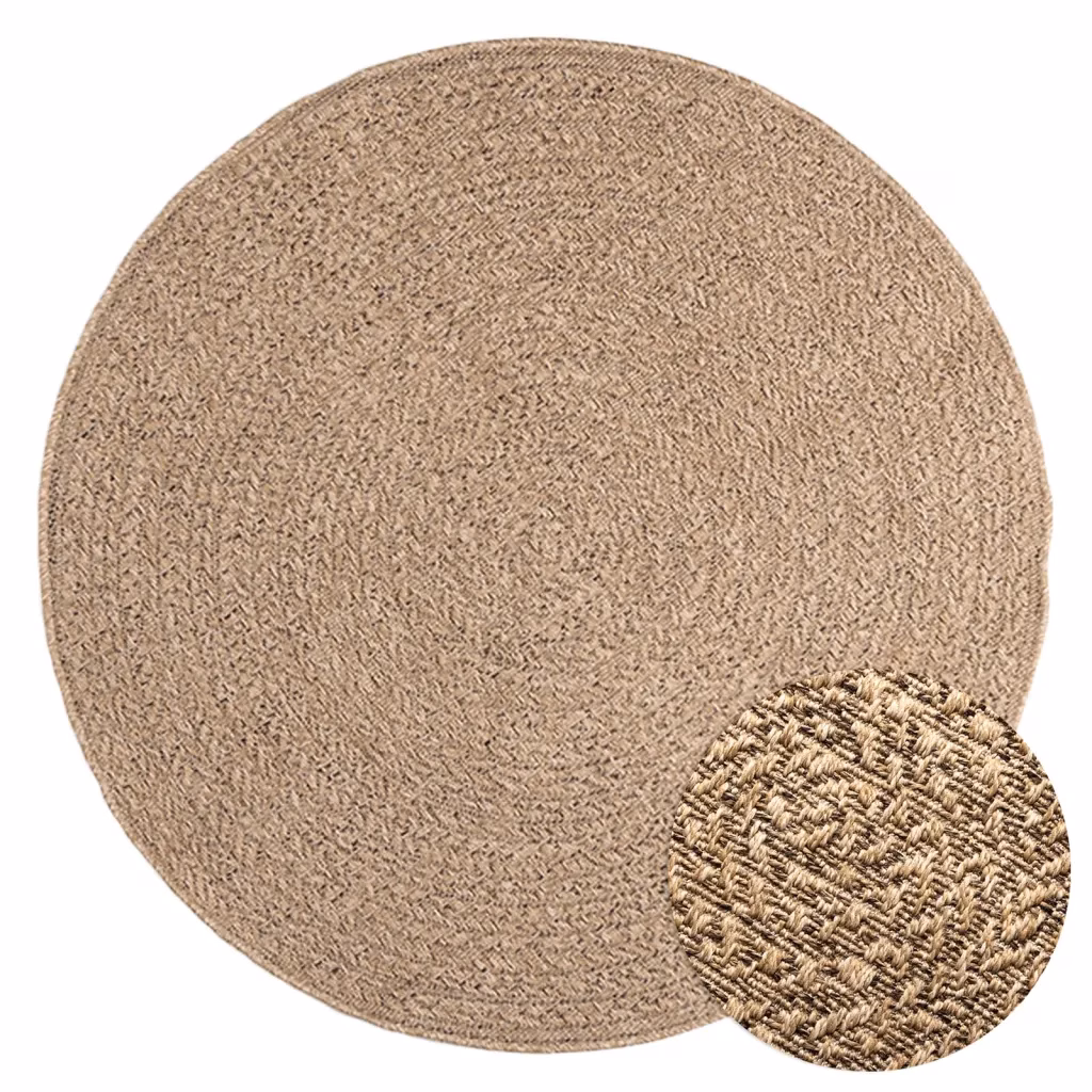 See pruun ümara kujuga vaip ZIZUR loob hubase atmosfääri nii siseruumides kui välitingimustes. Džuudi välimusega polüpropüleenpind annab interjöörile ja terrassile loodusliku ilme ning tänu UV-kindlale materjalile sobib vaip hästi rõdule, aeda või terrassile.