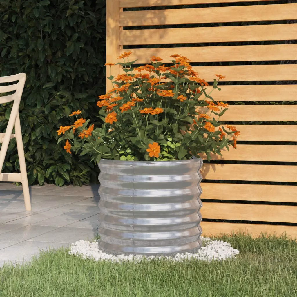 See hõbedane galvaniseeritud terasest ümmargune taimekast aitab luua korrastatud ja efektse istutusala aias, rõdul või verandal. Tugev konstruktsioon ja ilmastikukindel viimistlus sobivad pikaajaliseks kasutamiseks välitingimustes, pakkudes piisavalt ruumi lillede, juurviljade ja ürtide kasvatamiseks.