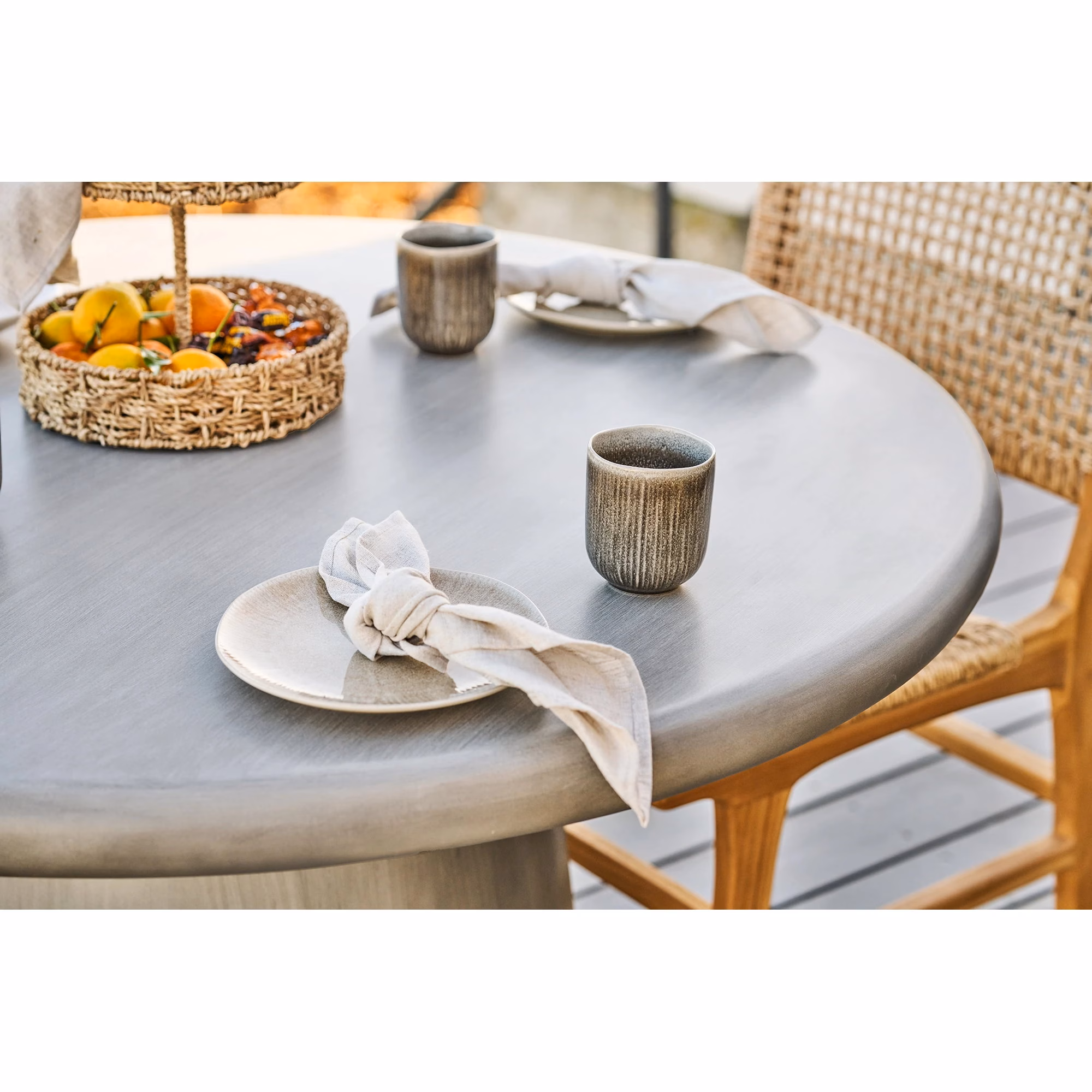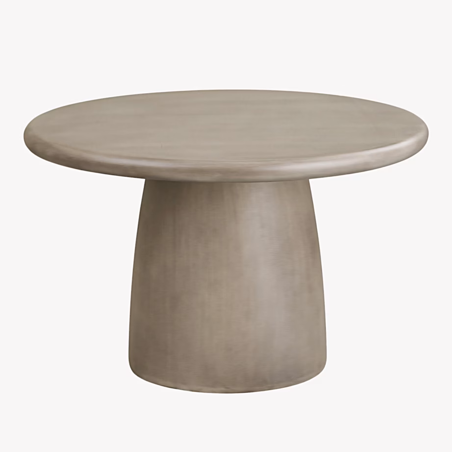 Hall ümmargune söögilaud aiaga või terrassiga kodu jaoks. Fiberclay-komposiit annab lauale massiivse ilme.
