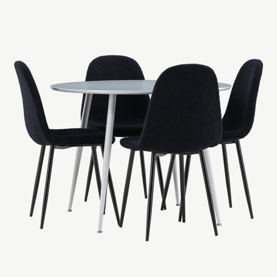 Ümmargune hall söögilaud toolidega on laitmatu valik igasse modernsesse kööki või söögituppa. Plaza söögilauakomplekt nelja musta Polar tooliga toob Sinu koju põhjamaist minimalismi, ühendades stiili, mugavuse ja vastupidavuse ühes tervikus.