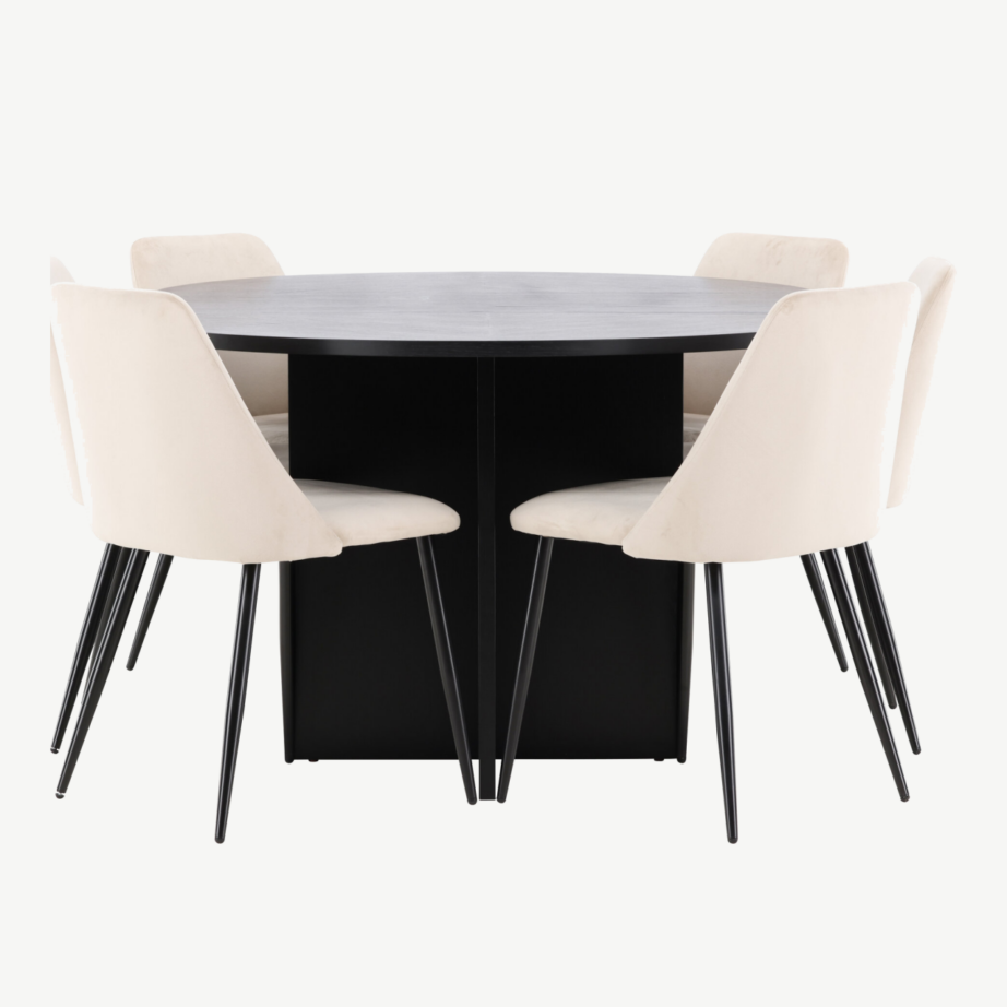 Loo oma koju elegantne ja kutsuv söögiala Strada musta söögilaua ja kuue beeži velvetkattega Night tooliga. Komplekt ühendab põhjamaiselt minimalistliku stiili, vastupidavad materjalid ning läbimõeldud ergonoomika, pakkudes Sulle ja Sinu külalistele mugavust igal söögikorral.
