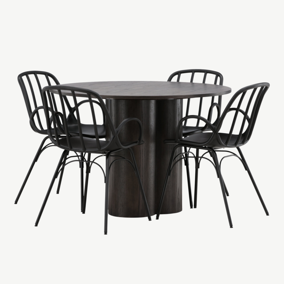 Loo oma kodu südamesse kaasaegne ning põhjamaise tunnetusega sööginurk Olivia ümmarguse söögilaua ja elegantsete mustade Dyrön toolidega. Komplekti modernne disain ning kvaliteetsed materjalid muudavad selle ideaalvalikuks nii avarasse kui hubasesse interjööri, pakkudes ühtaegu stiili ja praktilisust.