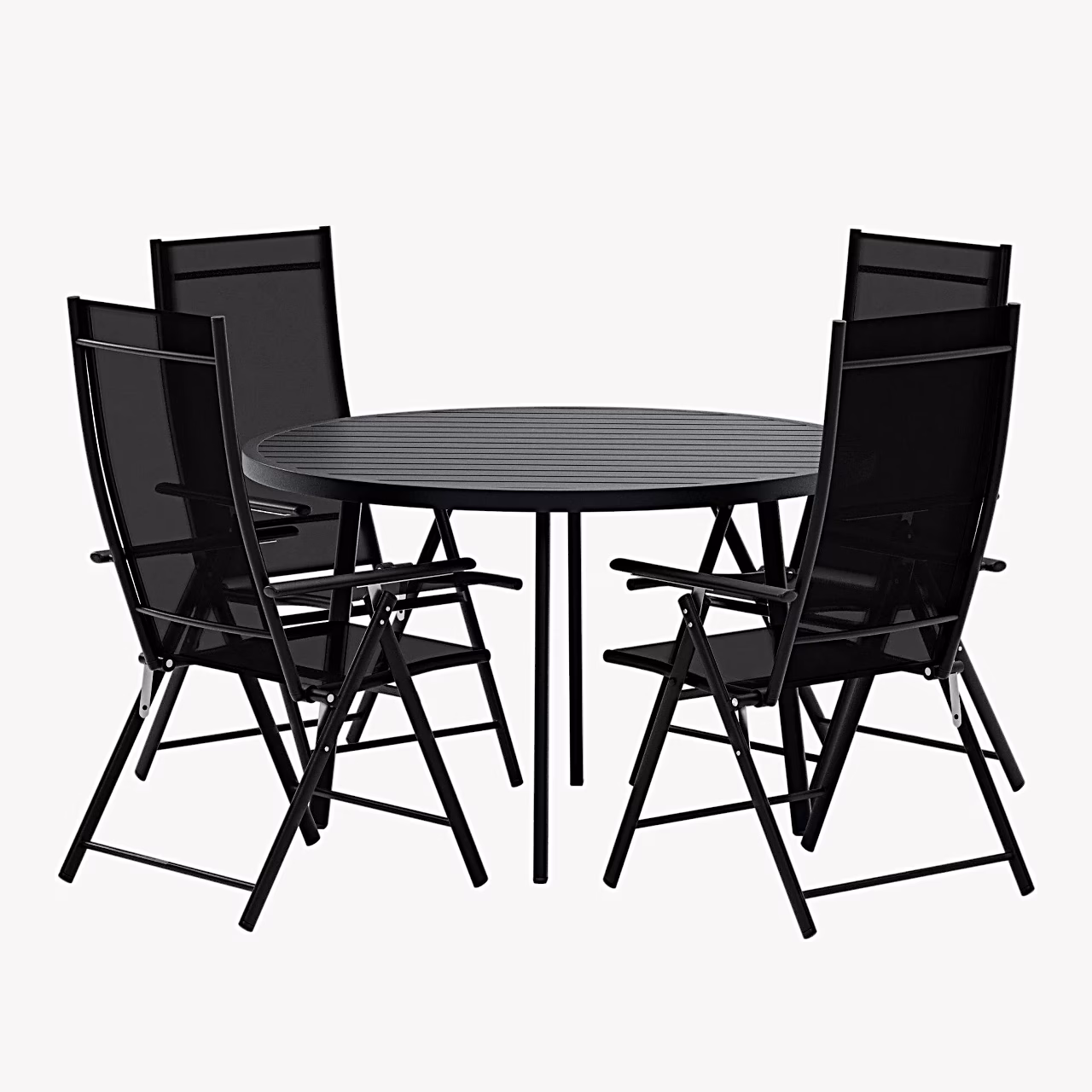 Kui otsid aiamööbli komplekti, mis ühendab kaasaegse musta värvilahenduse, mugavad reguleeritavad toolid ja praktilise ümmarguse alumiiniumlaua, on Giardini laud koos Levanzo toolidega kindel valik. Komplekt aitab Sul luua terrassile või aeda selge söögiala, kus on hea nii igapäevast hommikukohvi nautida kui ka pikemaid õhtusööke korraldada. Kerged, kuid vastupidavad materjalid ja ruumisäästlik kokkupandav lahendus sobivad eriti hästi põhjamaistesse oludesse ja väiksematele väliruumidele. Tellides saad aiasöögikomplekti, mis näeb kohe stiilne välja ja pakub Sulle mugavust paljudeks hooaegadeks.