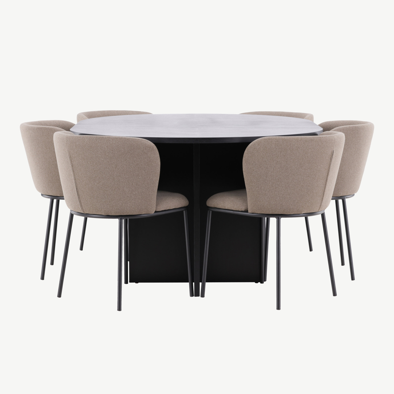 Loo oma söögituppa kaasaegne ja hubane atmosfäär Venture Home’i musta ümmarguse söögilauakomplektiga – komplektis on Strada pikendatav söögilaud ja kuus pruuni polüesterlinase kattega Edina tooli. See kvaliteetne komplekt ühendab põhjamaise disaini, vastupidavuse ning praktilisuse, sobides ideaalselt nii igapäevasteks pereõhtusöökideks kui ka suuremateks koosviibimisteks.
