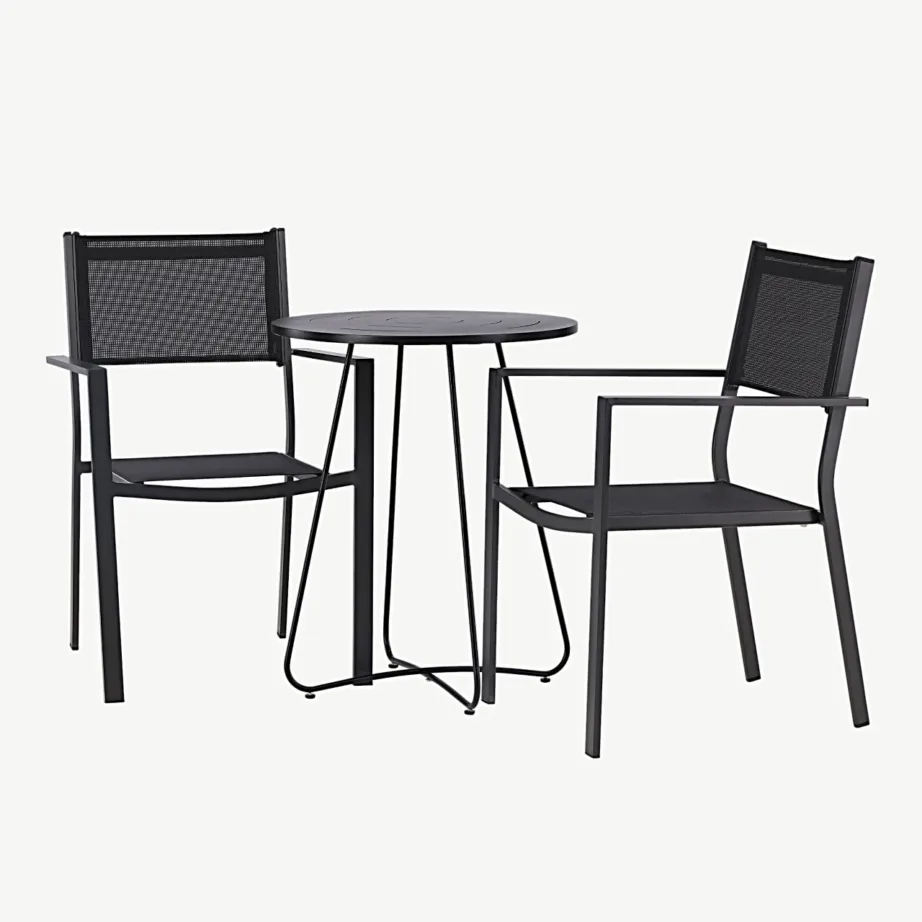Kui otsid elegantset ning kauakestvat lahendust oma terrassile, rõdule või aeda, on ümmargune terasest õuemööbli komplekt Bacong/Copacabana suurepärane valik. Komplekti kuuluvad must ümmargune terasest kohvilaud ning kaks virnastatavat Copacabana sarja tooli, mis ühendavad endas põhjamaise stiili, funktsionaalsuse ja kestvuse. Komplekt sobib hästi hommikukohvi nautimiseks või mõnusateks koosviibimisteks värskes õhus.