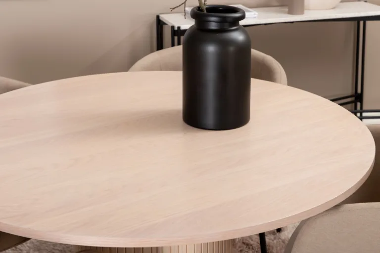 Bianca ümmargune söögikomplekt ühendab endas modernse põhjamaisuse ja ajatu stiili, sobitudes suurepäraselt nii väiksemasse korterisse kui avaramasse kööki. Valge peitsiga Bianca laud ning beežid Berit toolid loovad valgusküllase ja kutsuva sööginurga, mida on lihtne sobitada muu sisustusega.