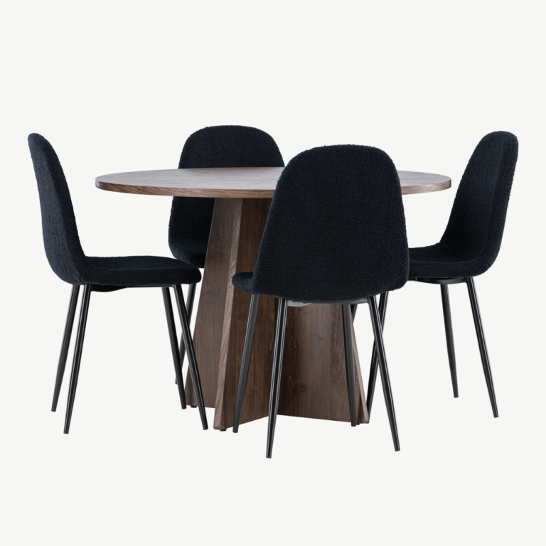 Muuda oma söögituba elegantseks ja kutsuvaks Venture Home’i ümmarguse mokkatooniga söögilauakomplektiga. Komplekt ühendab endas stiilse Bootcut laua ja kaasaegsed musta värvi Polar toolid, pakkudes nii igapäevasteks söögikordadeks kui ka pidulikemateks sündmusteks ideaalset kombinatsiooni. Disainilt põhjamaine, praktiline ja vastupidav – see ümmargune mokkatoonis söögilauakomplekt sobib ideaalselt igasse kodusse, kus väärtustatakse kvaliteeti ja mugavust.
