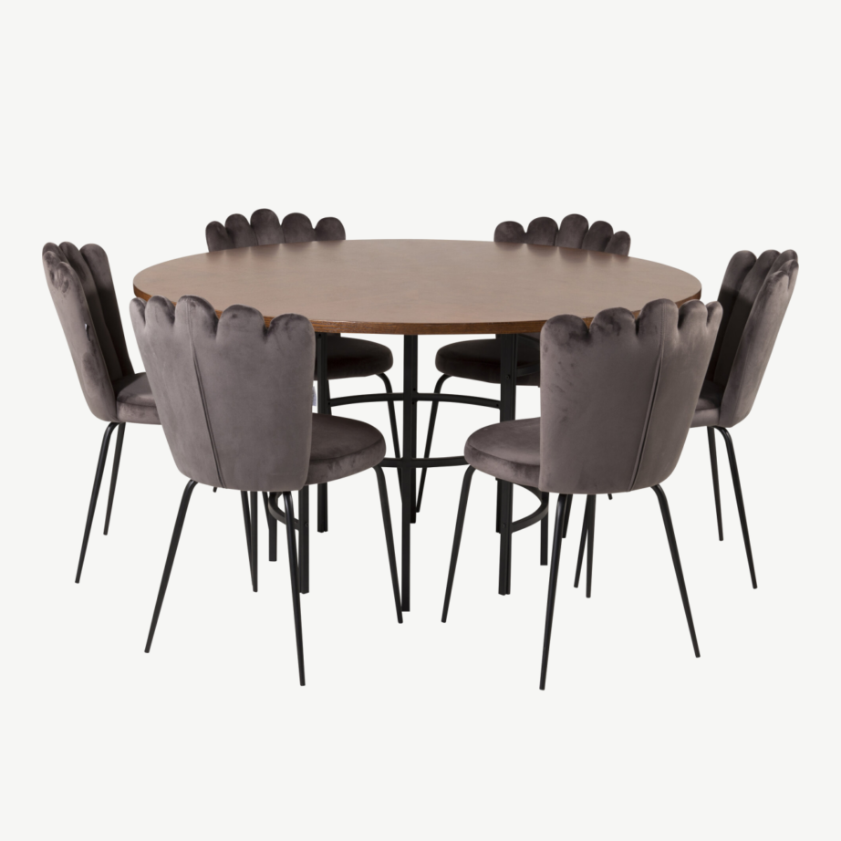 Täienda oma kodu Copenhageni ümmarguse söögilauakomplektiga Limhamni hallide velvettoolidega, et nautida igapäevast stiili ja mugavust tõeliselt eriliseks muudetud söögialas.