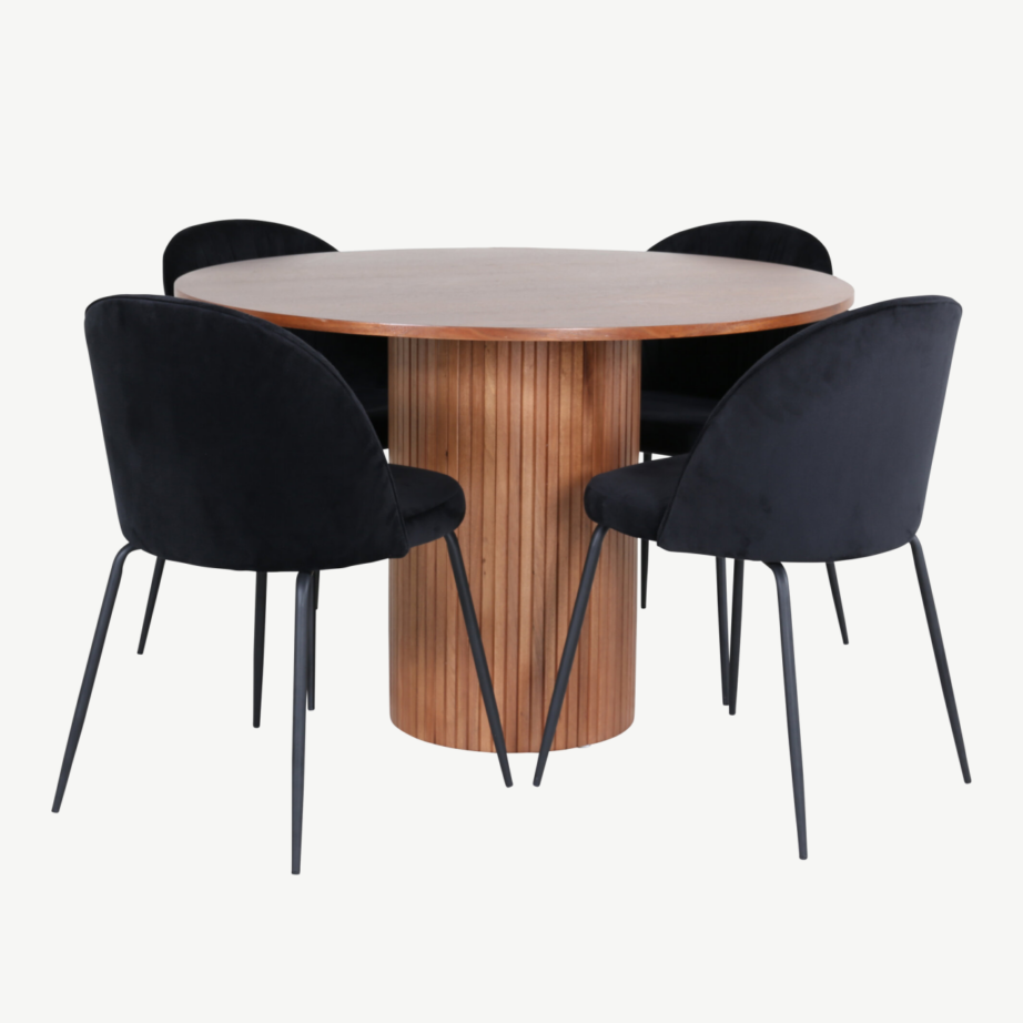 Loo oma söögituppa või avarasse kööki luksuslik ja pilkupüüdev atmosfäär Bianca ümmarguse söögilauakomplektiga. See põhjamaise esteetikaga disainmööbli komplekt ühendab kvaliteetsed materjalid ning ajatu mugavuse. Kaasaegne ümmargune söögilauakomplekt pähkel must annab igale ruumile eksklusiivse ilme ja praktilisuse.
