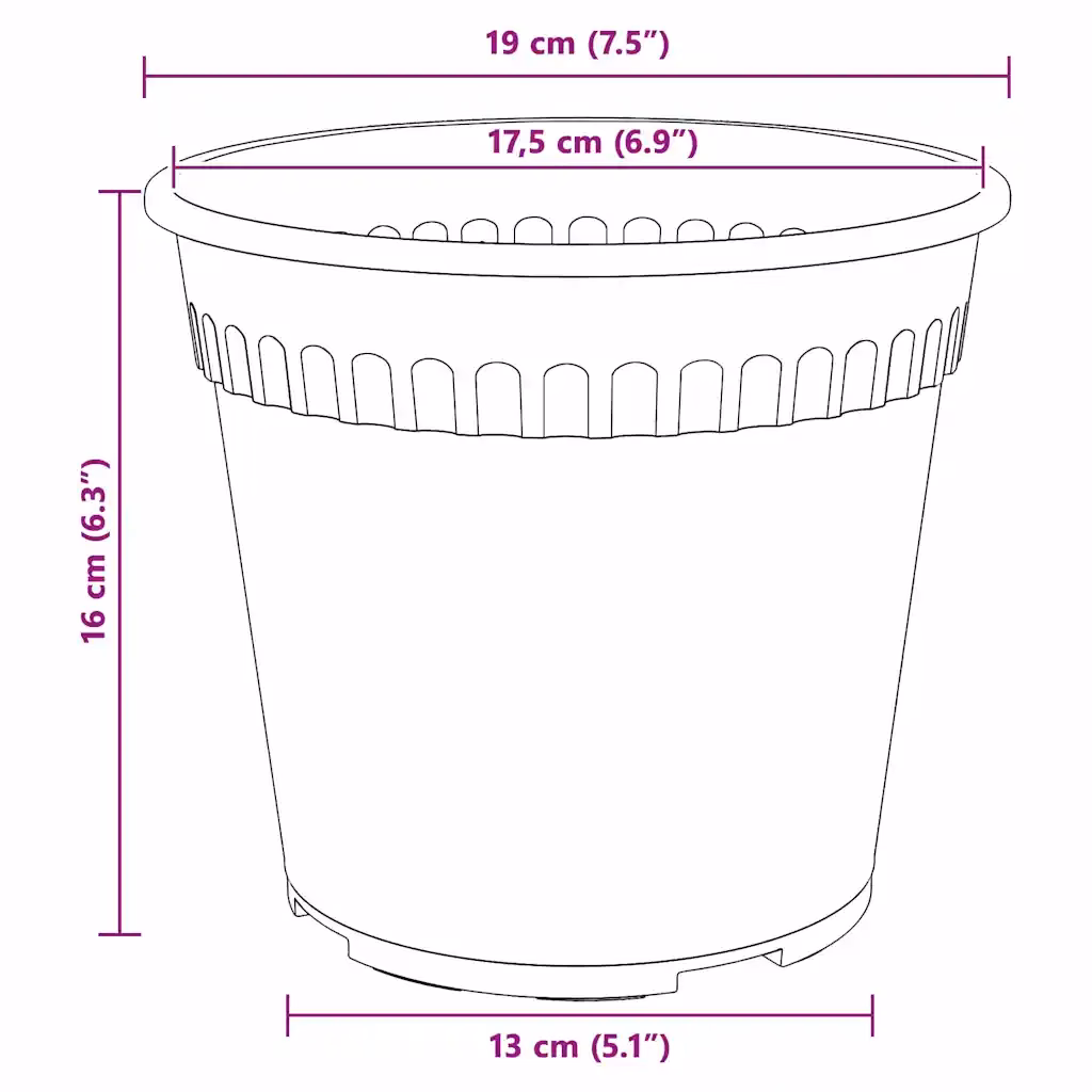 - Ühtlane ümmargune kuju Ø 19 x 16 cm sobib erinevat tüüpi toalilledele ja väiksematele aiataimedele.