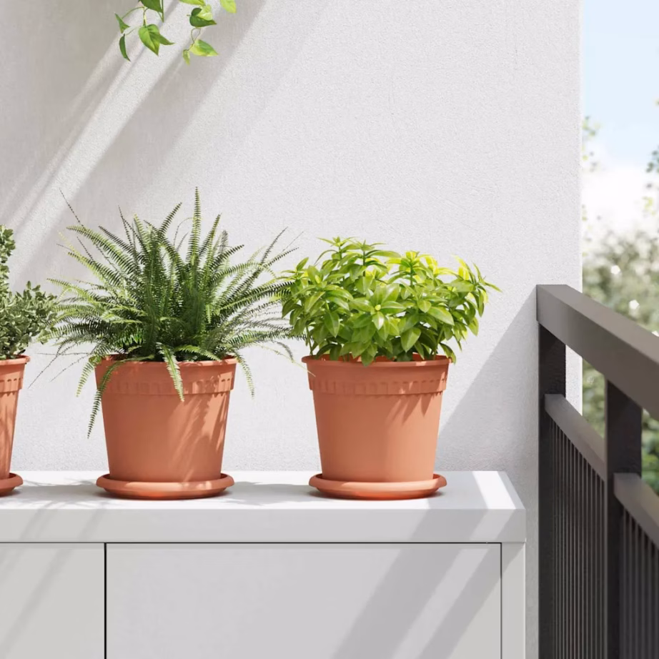 - Sobib sisetingimustesse ja välitingimustesse, mistõttu saab sama tüüpi potte kasutada ühtse ilme loomiseks rõdul, aias ja eluruumides.