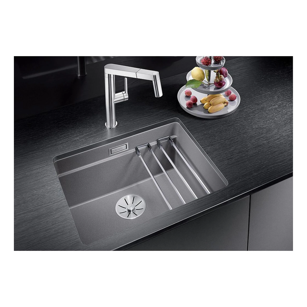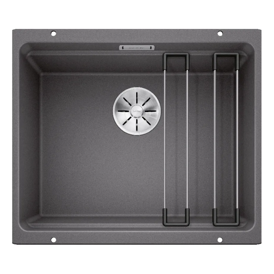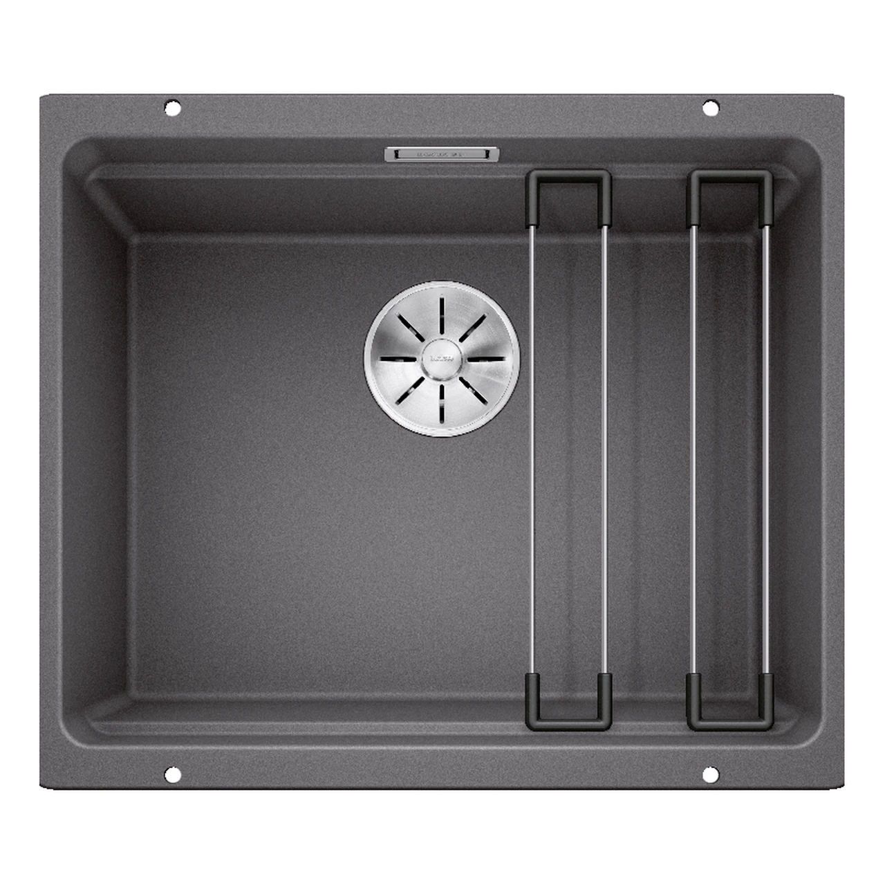 Uputatav Silgranit köögivalamu astanguga BLANCO ETAGON 500-U, 1-kausiline, InFino äravool, PuraDur pind, rock grey, 60 cm kapile