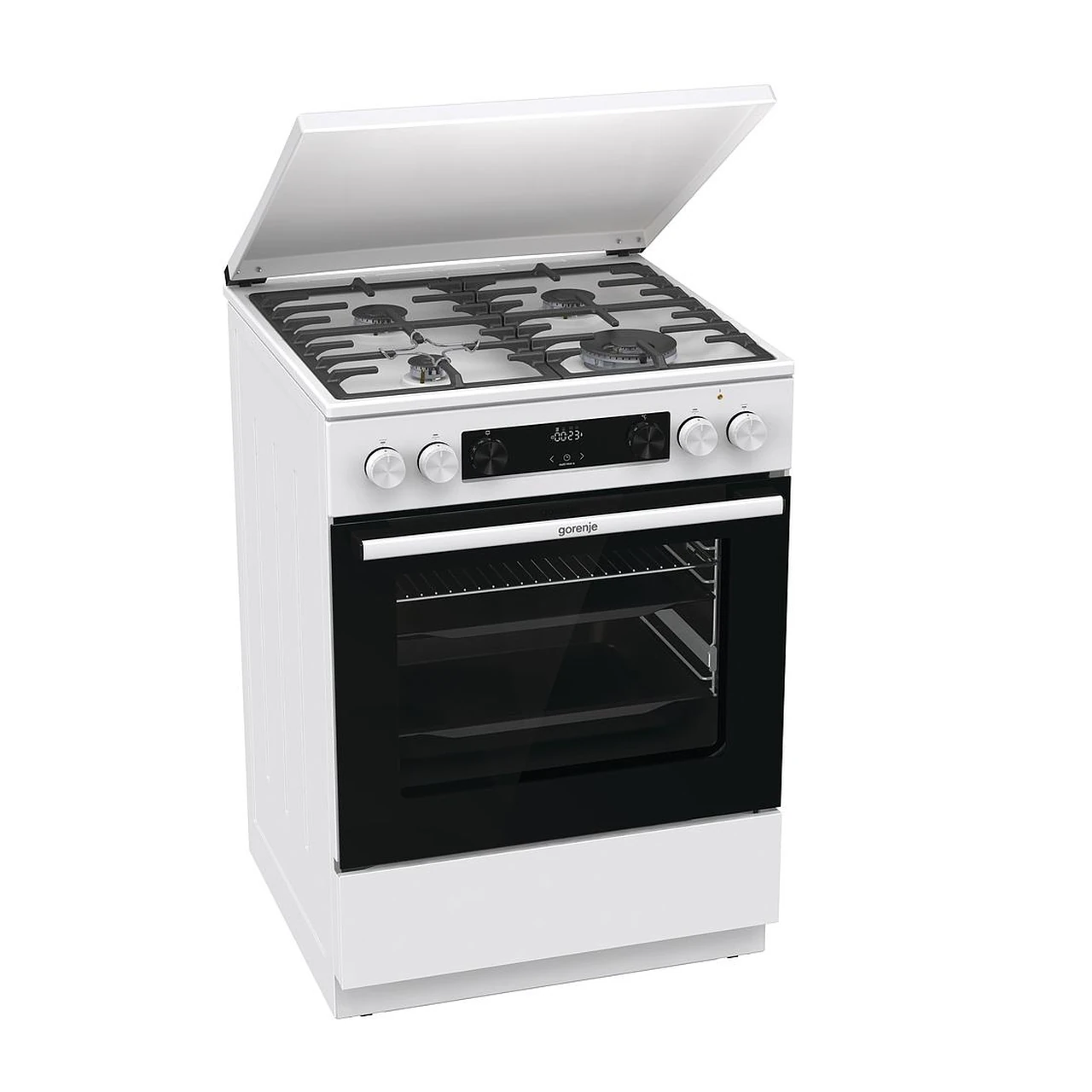 Vabaltseisev Gorenje GKS6C71WA on 60 cm lai gaasipliit elektriahjuga, mis sobib hästi nii igapäevaseks kokkamiseks kui ka suuremate roogade valmistamiseks. Neli gaasipõletit koos WOK-tsooniga, mahukas 71 liitrine elektriahi 11 küpsetusfunktsiooniga ning AquaClean puhastus pakuvad tasakaalu mugavuse, paindlikkuse ja lihtsa hoolduse vahel.