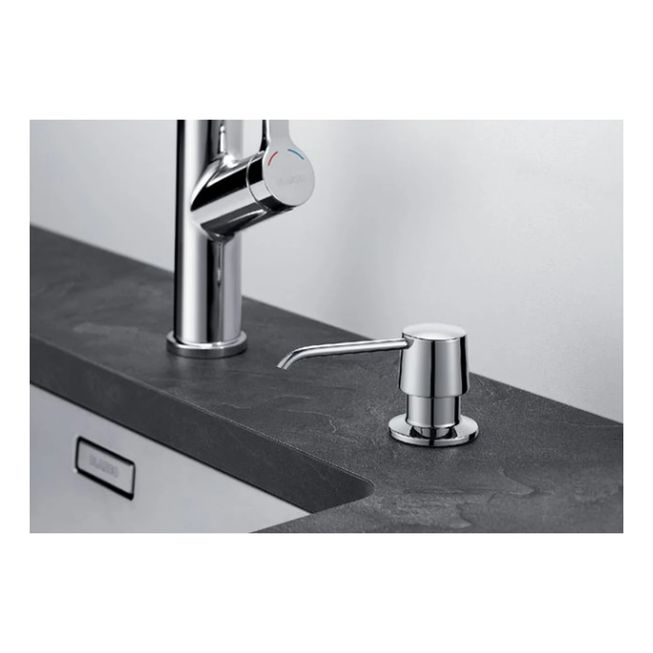 BLANCO YANO kroom seebidosaator aitab hoida tööpinna korras, peites nõudepesuvahendi või vedelseebi valamu alla peidetud anumasse. Ülaossa jääb nähtavale vaid diskreetne kroompinnaga pumbaosa, mis sobitub hästi kaasaegsete köögisegistite ja valamutarvikutega.