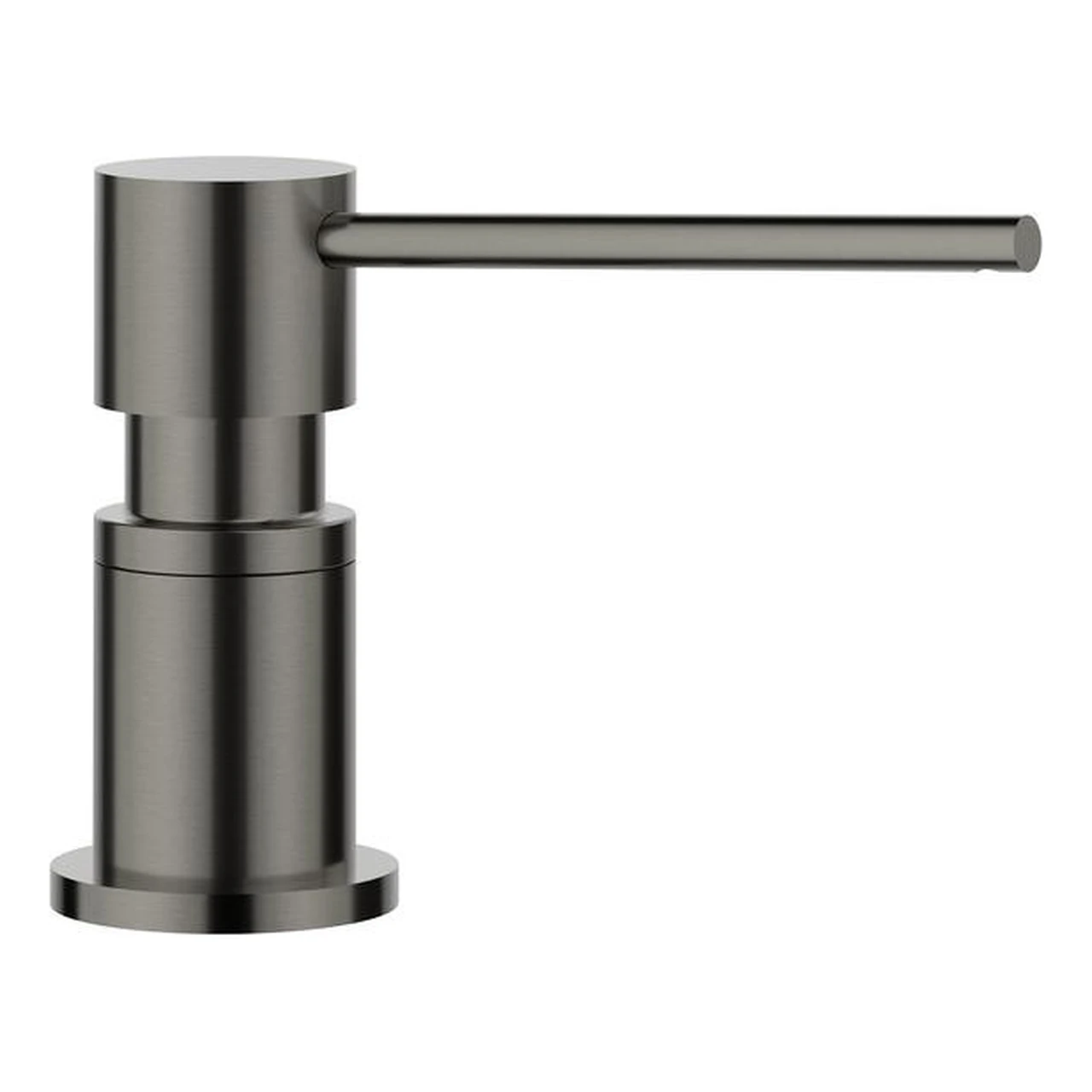 Peida nõudepesuvahendi pudel tööpinna alla BLANCO LATO Satin Dark Steel seebidosaatoriga